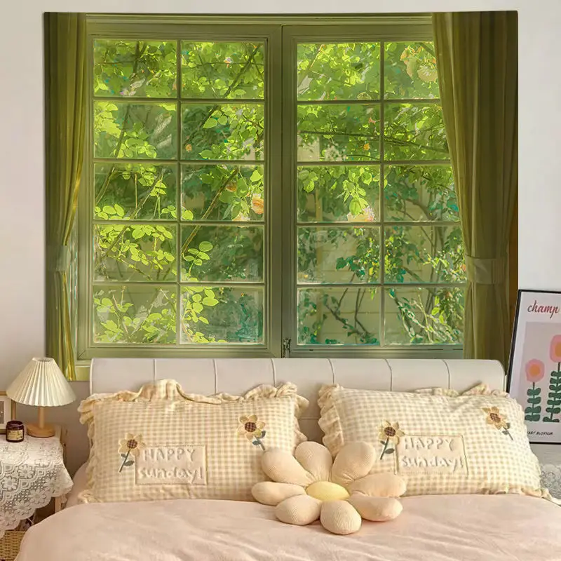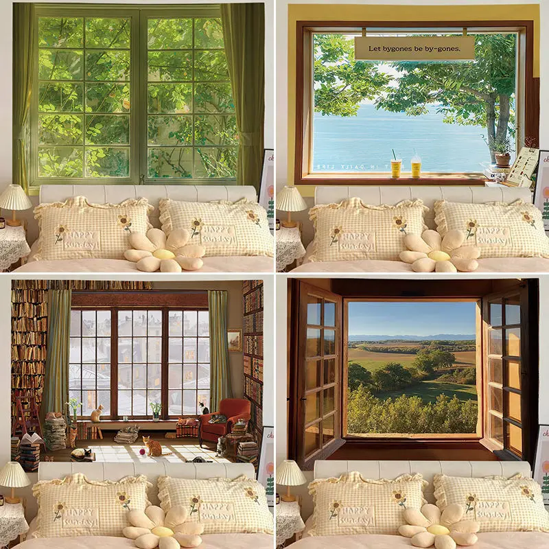 Window View Internet Celebrity Live Background Cloth Room Bedroom Decorative Tapestry Dormitory Renovation Photographing Cloth - Купить с бесплатной доставкой