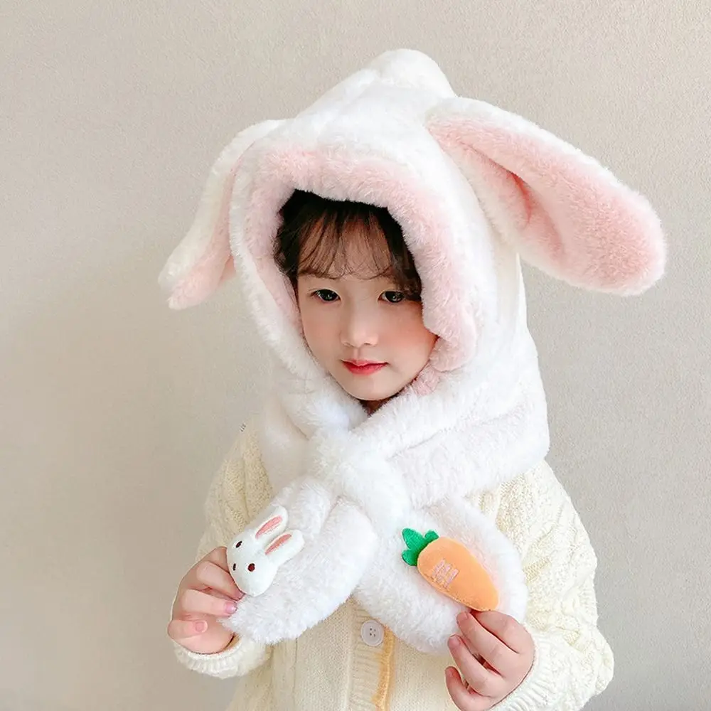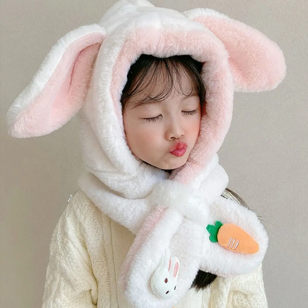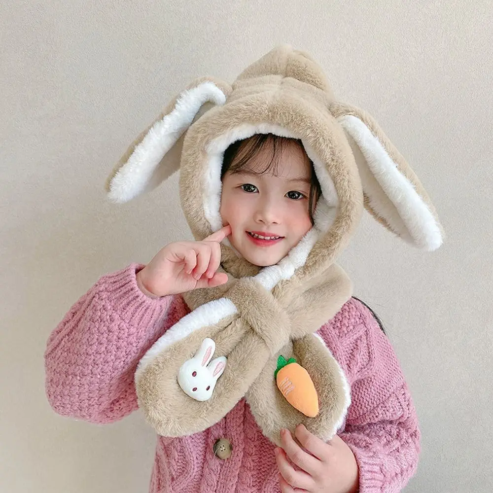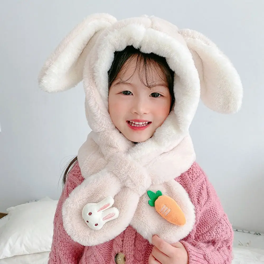 "Windproof Cold-proof Scarf Integrated Cap Rabbit Ear Plush Ear-flap Winter Cap Baby Scarf Hat Two Piece Set Bomber Hat" * Buy Now With Free Shipping Just For $8