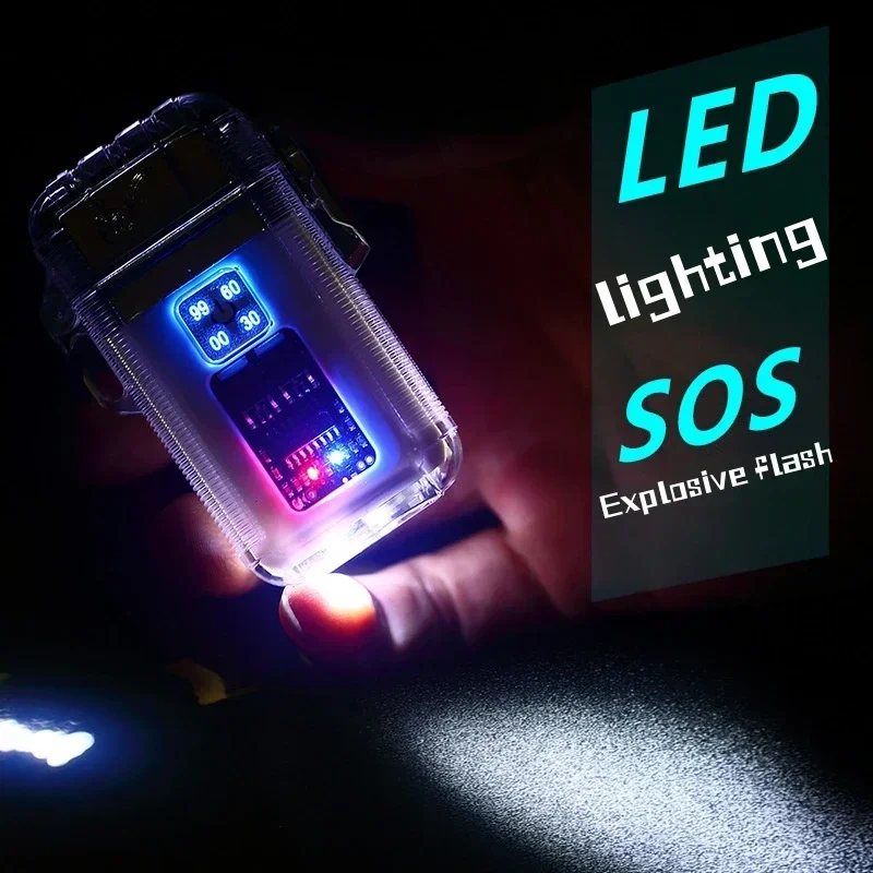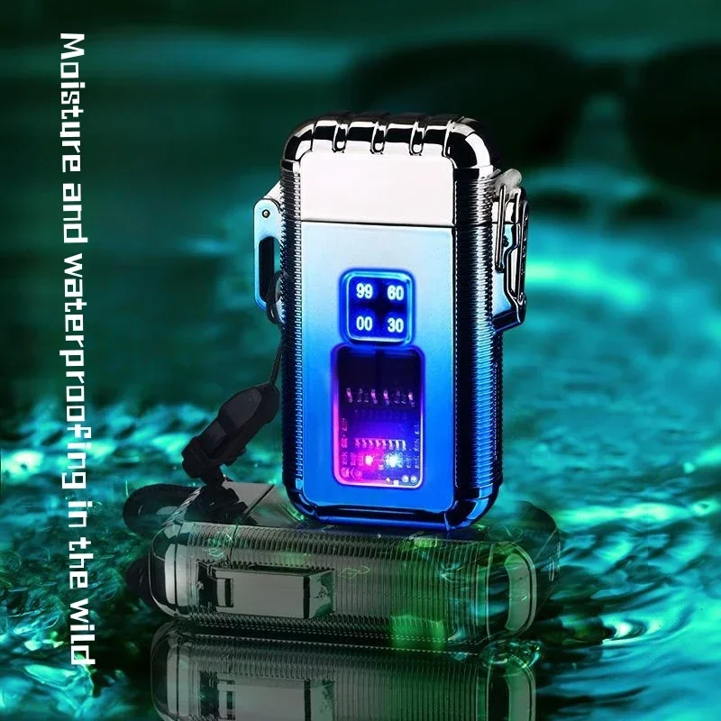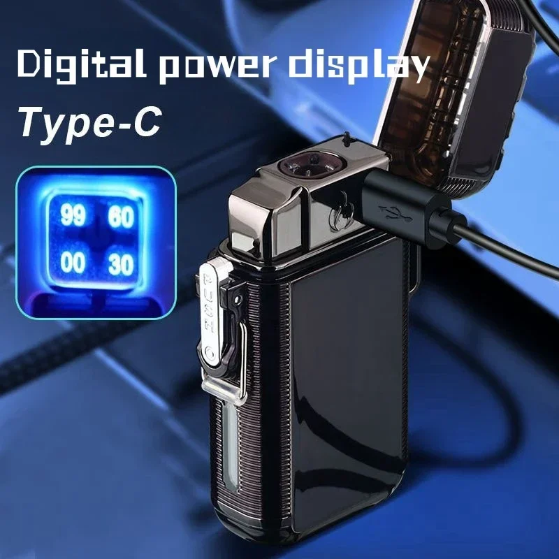 Windproof Direct Punch Blue Flame Pulse Dual Arc Gas Electric Metal Lighter Type C Charging LED Display Power Portable Lighter - Купить с бесплатной доставкой