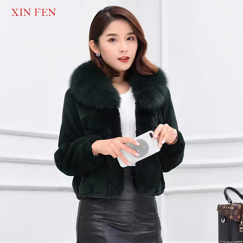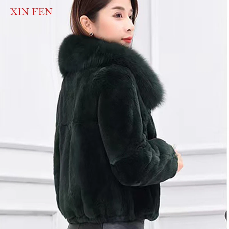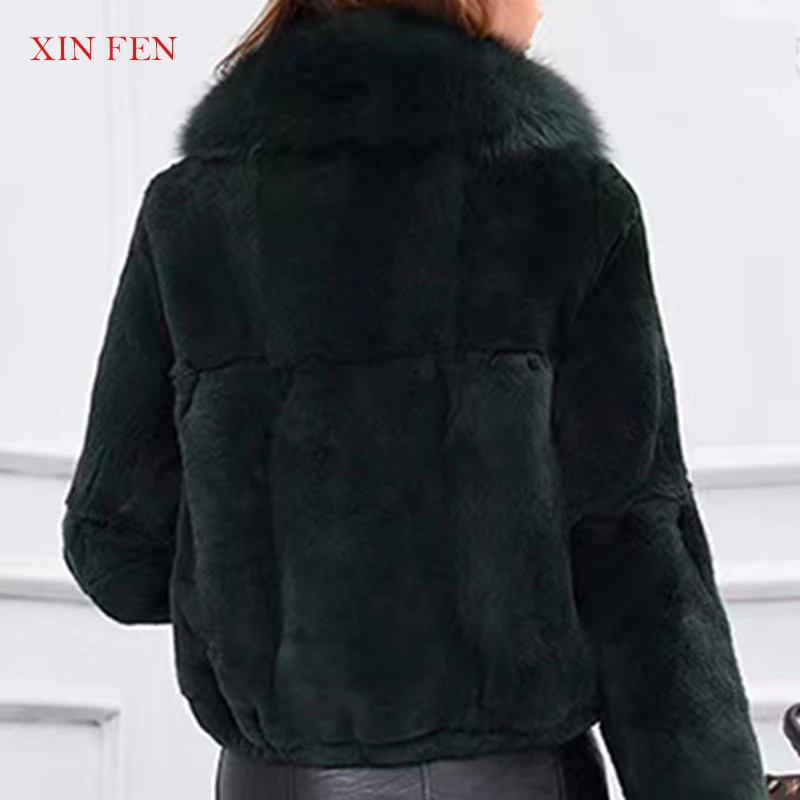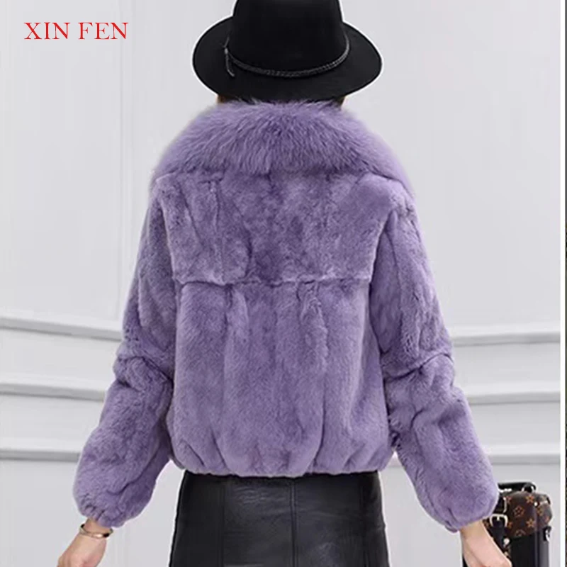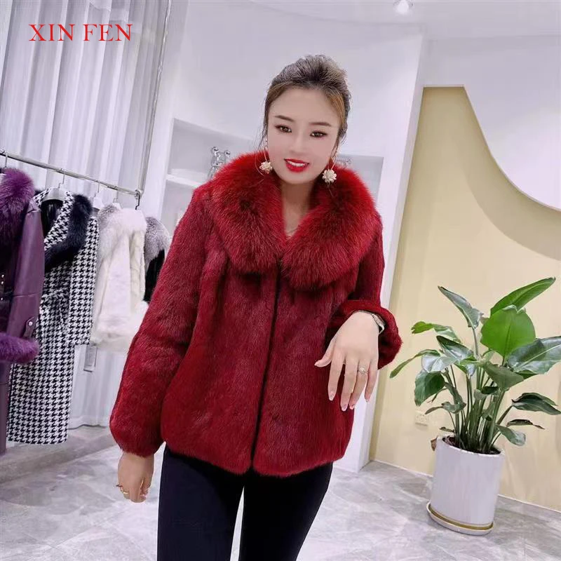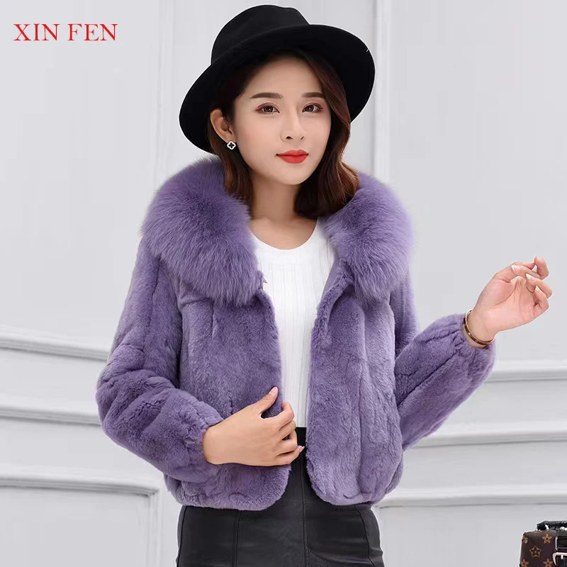 Winter 2023,Naturally Genuine Whole,Skin Rabbit Fur Jacket,With Luxury Real Natural Fox Fur Collar Full,Pelt Rabbit Fur Overcoat - Купить с бесплатной доставкой
