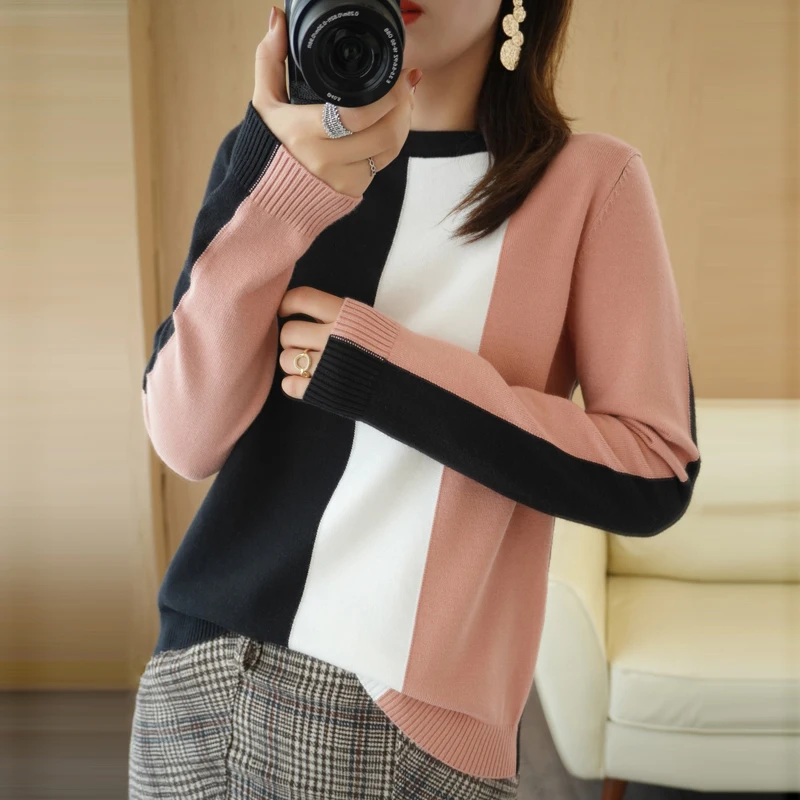 tMbxRDMqДолго искали Winter Color Matching Long Sleeve Sweater Women's Round Neck Pullover Bottoming Sweater Short Contrast Color With Warm Wool Insi, но не могли найти? Предоставляем вашему вниманию Winter Color Matching Long Sleeve Sweater Women's Round Neck Pullover Bottoming Sweater Short Contrast Color With Warm Wool Insi по лучшей цене на рынке!
