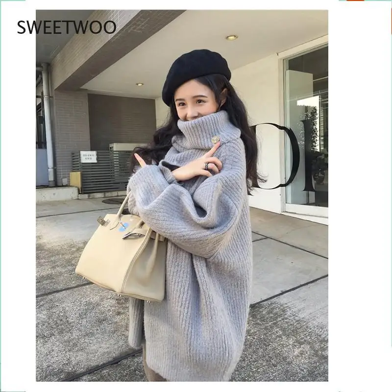 «Winter Female Retro Solid Color Button Decoration Chic Pullover Turtleneck Sweater Women Long Sleeve Loose Elegant Lazy Pullover» по лучшей цене на рынке! Всего за 15$ (1425рублей)