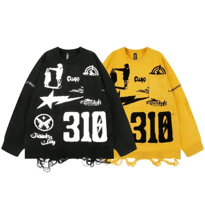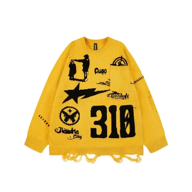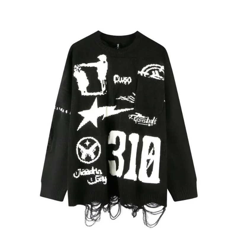HyBgqFsFrHere you can buy Winter Men Pullover High Street Tattered Rough Edge Knit Shirt Round Neck Color Matching Sweater Casual Neutral Lazy Style Top with free delivery to your post office.