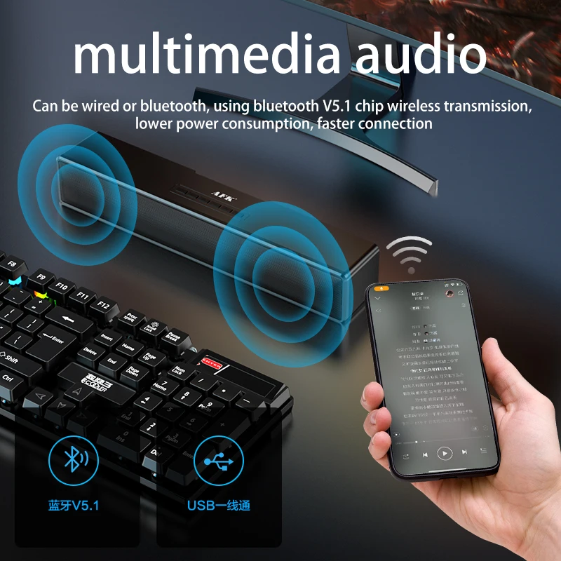 Wireless BT5.2 Multimedia Speakers RGB Light Computer Sound Bar Stereo USB Powered Gaming Loudspeakers For PC Tablets Laptop New - Купить с бесплатной доставкой