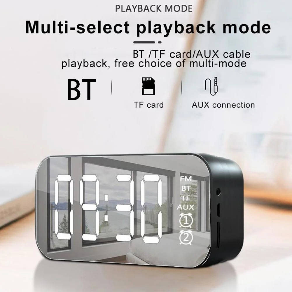 zKBhsKRvNjHere you can buy Wireless Bluetooth Speaker With FM Radio Mini Portable Card Mirror Alarm Clock Portable Outdoor Bluetooth Settings For All Phone with free delivery to your post office.