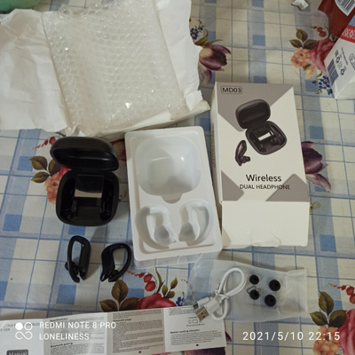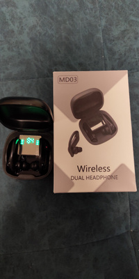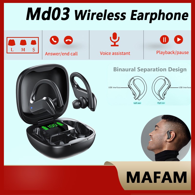 MD03 totally wireless earphones 1 . Totally wireless high-performance earphones with comfortable, secure-fit ear hooks for lightweight comfort and stability . Charging case 1 . Wireless Bluetooth 5 .0 Earbuds MD03 Waterproof Headset Stereo Headphone | eBay