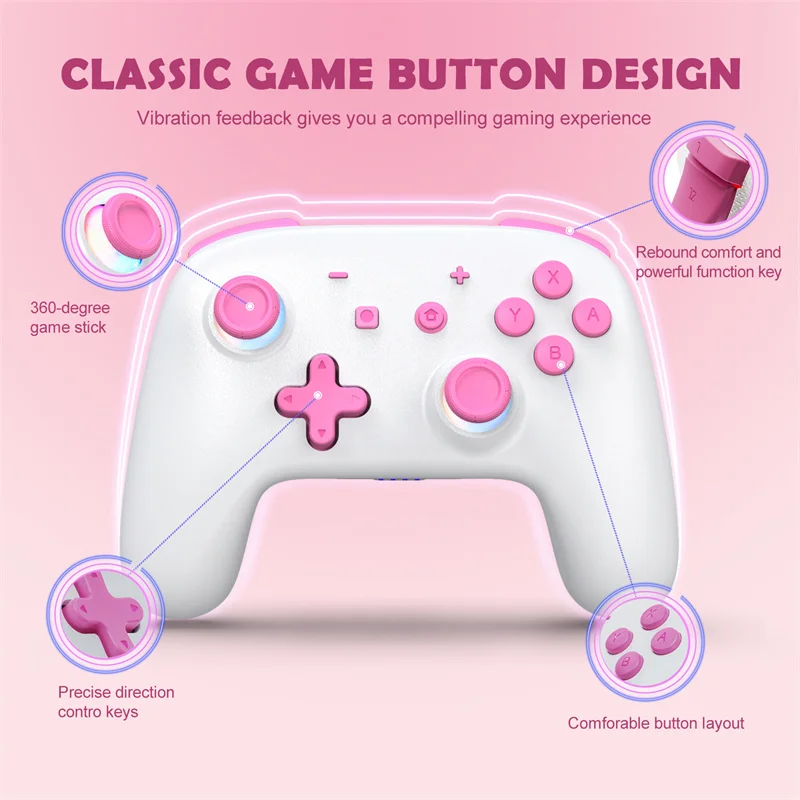 FtHFFLOKaHere you can buy Wireless For Switch Controller Pink for Nintendo Switch Pro Controller LED Joystick Wake-up Function Adjustable Turbo Motion with free delivery to your post office.