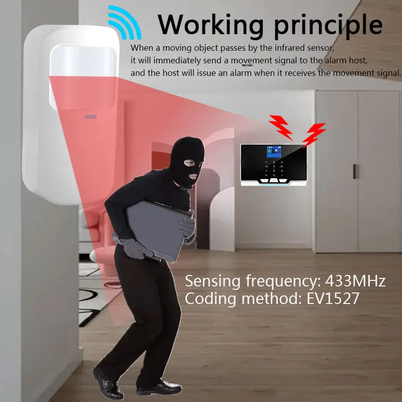 qmtxcoUDlHere you can buy Wireless Infrared Sensor Smart Pet Protection 433MHz Frequency EV1527 Encoding Method Connect Alarm Host To Use Anti White Light with free delivery to your post office.