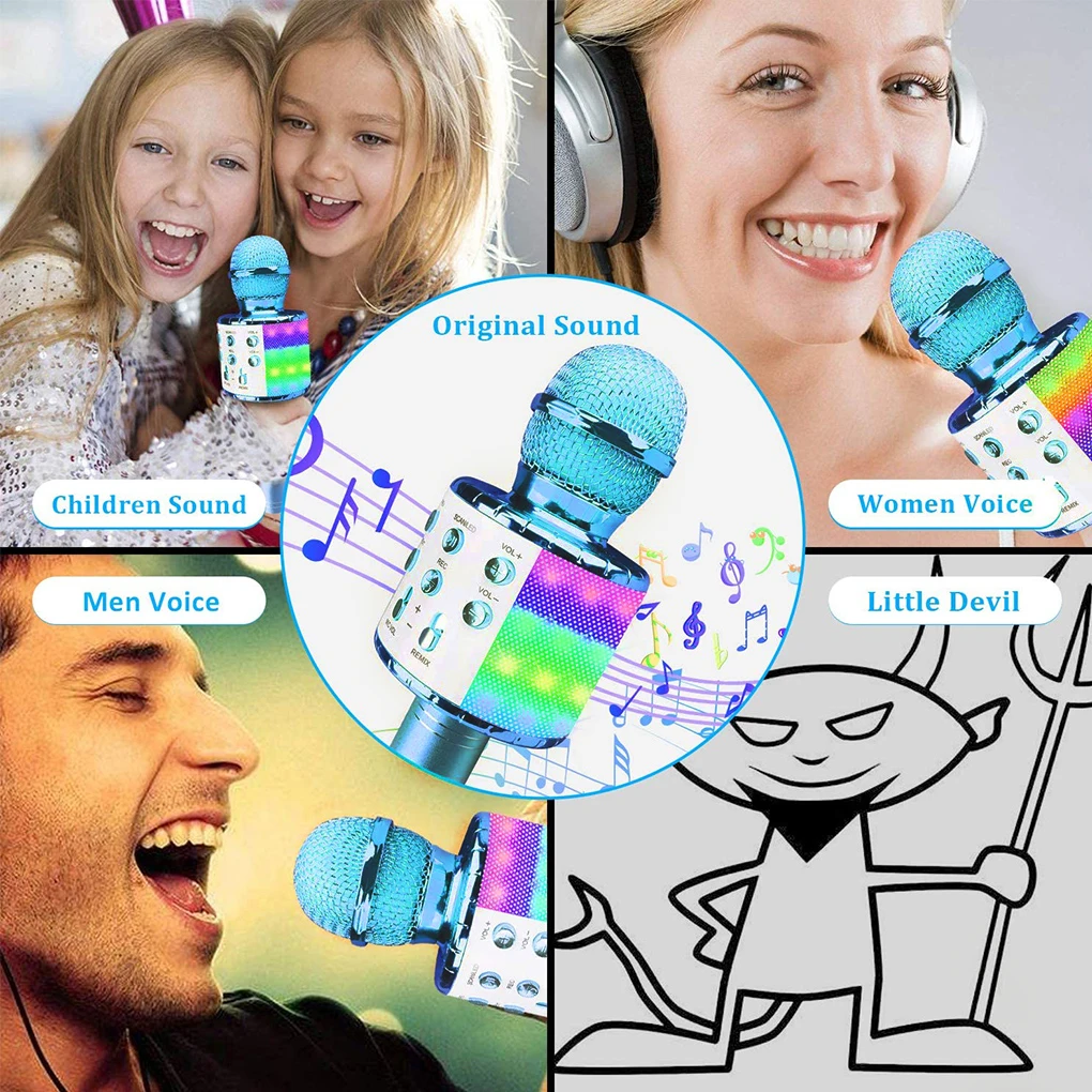 "Wireless Karaoke Microphone Bluetooth-compatible Handheld Speaker Home KTV Player with Dancing LED Lights Record Function" * Buy Now With Free Shipping Just For $3