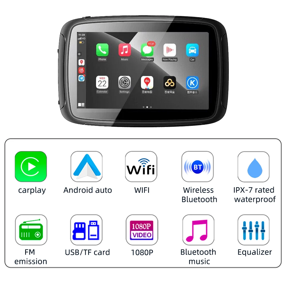 iLLrPJoaHere you can buy Wireless Navigation Dual BT5.0 IOS Carplay Android Auto/Autolink IPX7 Waterproof 5"HD Display Motorcycle EQ/WIFI/USB/TF Portable with free delivery to your post office.