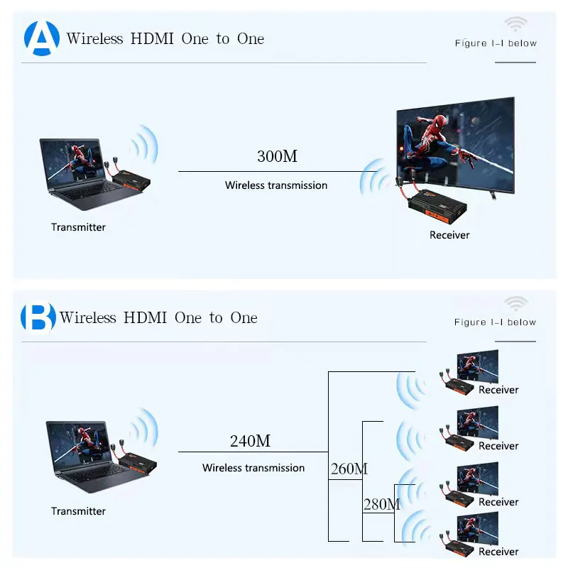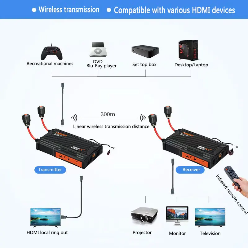 Wireless Transmitter and Receiver 300M Video Extender kit HDMI-compatible Lollipop Antenna For DSLR Camera PS4 to Projector PC - Купить с бесплатной доставкой