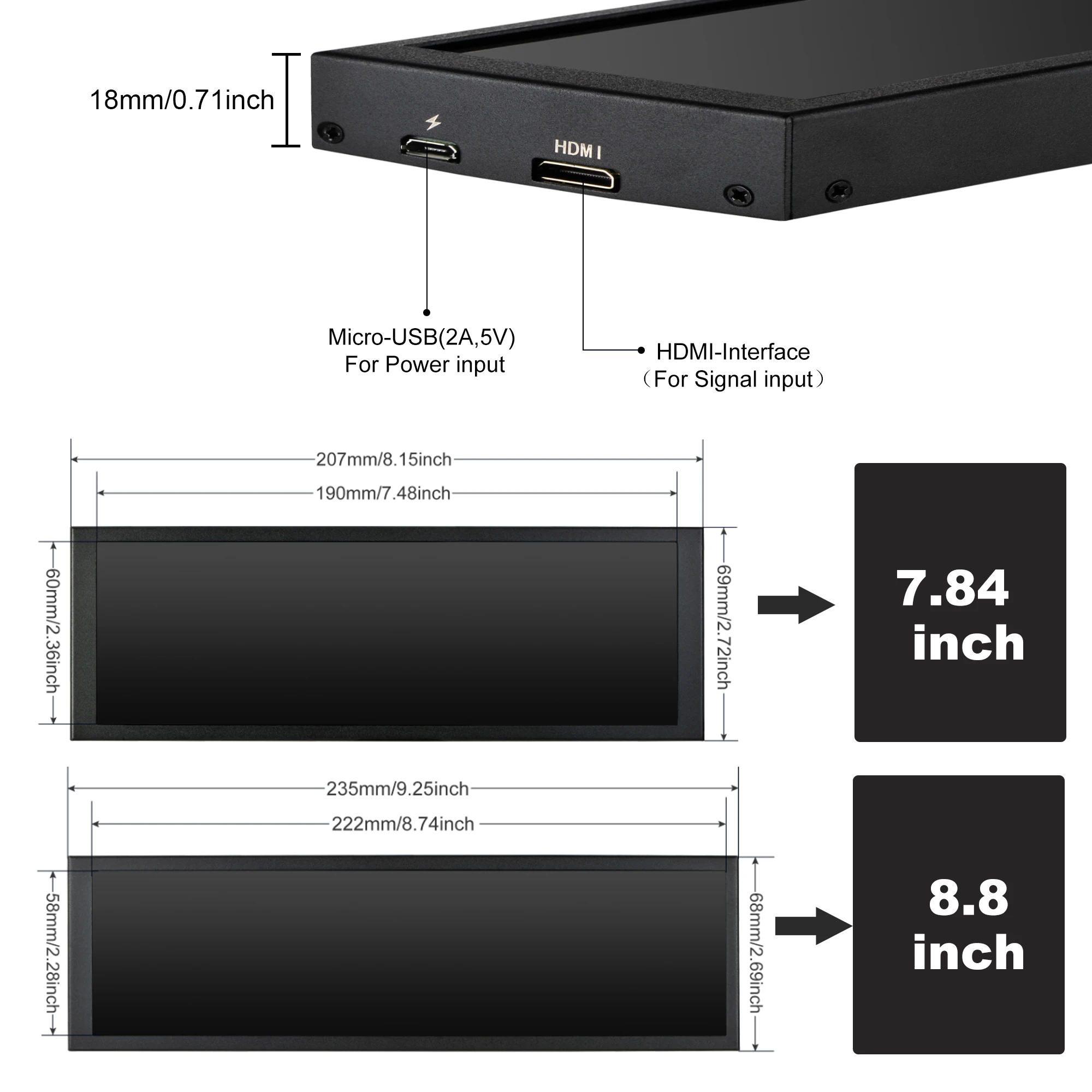 "Wisecoco 1920x480 IPS Secondary Screen 7.84"/8.8" Portable Monitor HDMI Laptop Display for PC Computer Raspberry PI 4 3 Aida64" * Buy Now With Free Shipping Just For $60