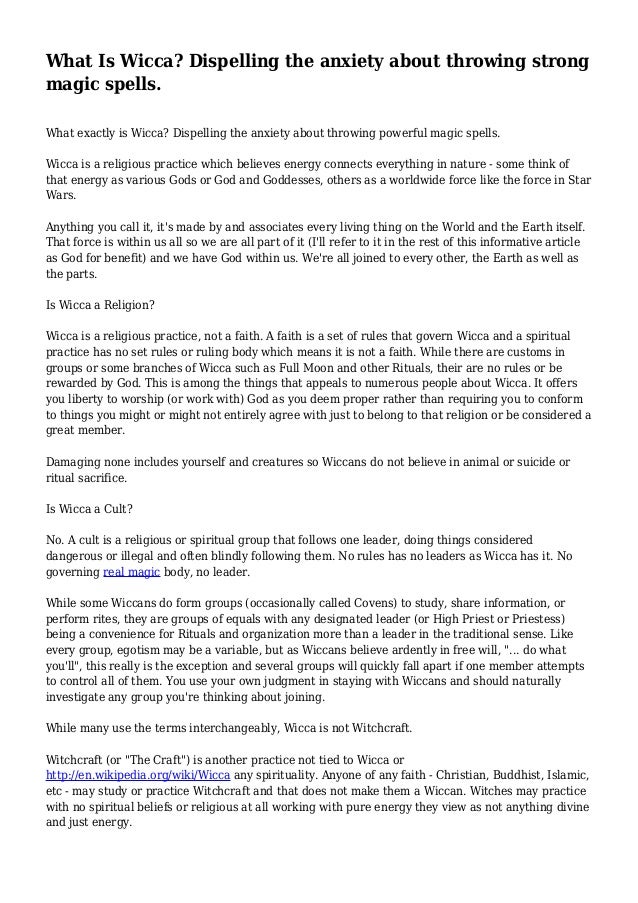 Essay about Witchcraft . 1438 Words6 Pages . Witchcraft . Many religions have been misunderstood by people . Sometimes their ignorance and beliefs cannot be opened up to the truth . Witchcraft is one of those religions . The majority of people have sometimes compared Witchcraft to Satanism or any religion dealing with the occult .