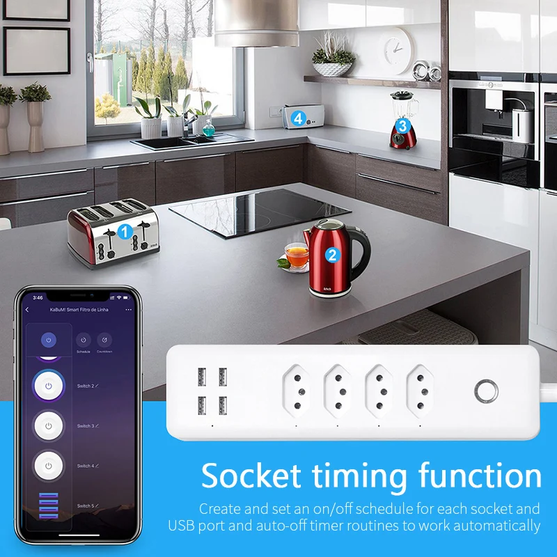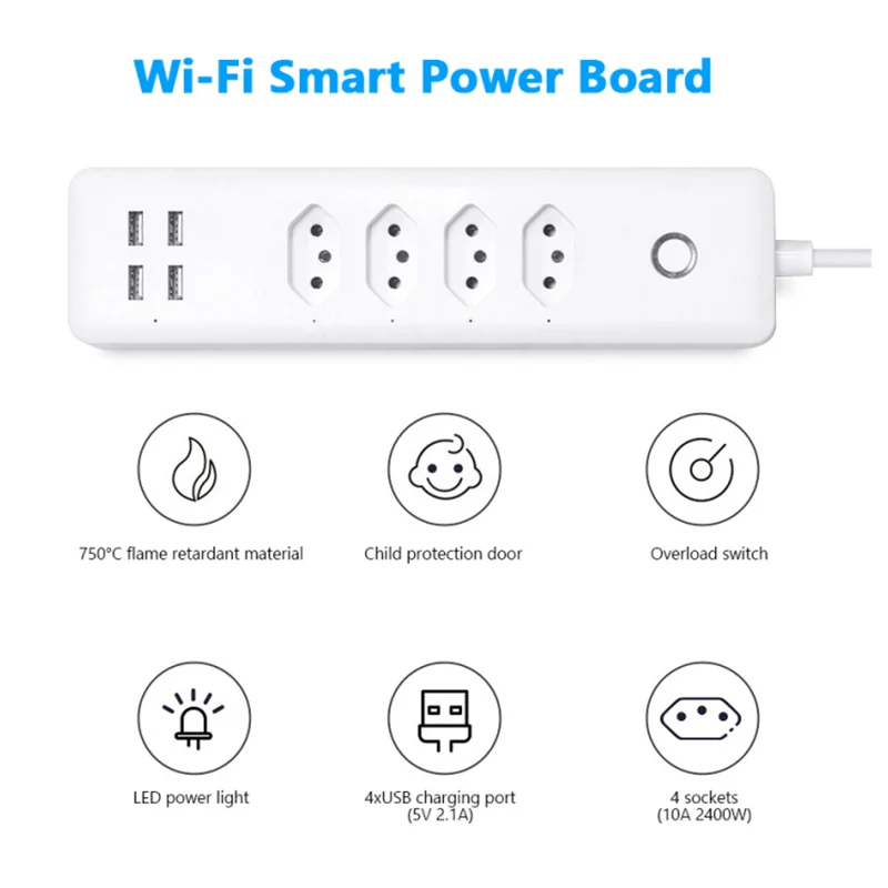 With 4 Usb Charging Port Usb Port App Remote Control Work With Alexa Google Smart Strip White Outlets Plug Overload Protection - Купить с бесплатной доставкой