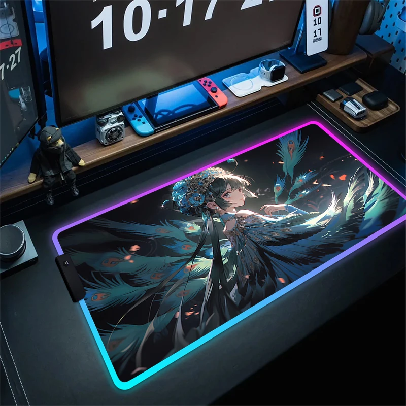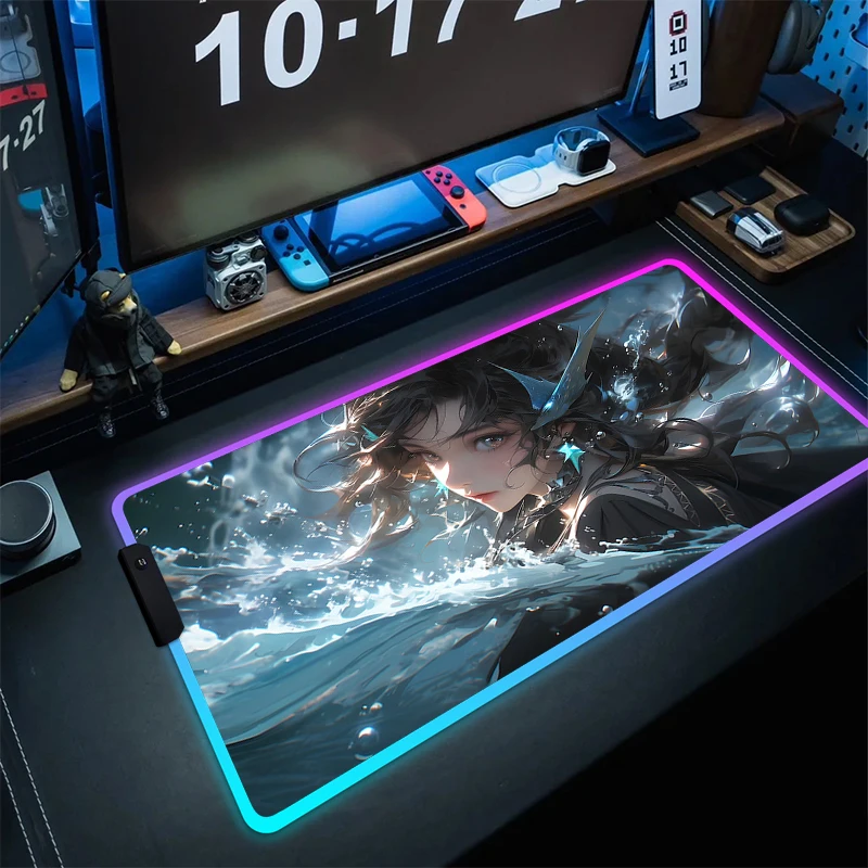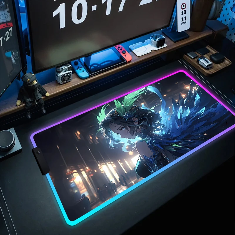 With Backlit Rubber RGB Mousepad LED Large Gaming Mouse Pad Anime Computer Mouse Mat Gamer Non-Slip Desk Mat Game Accessories XL - Купить с бесплатной доставкой
