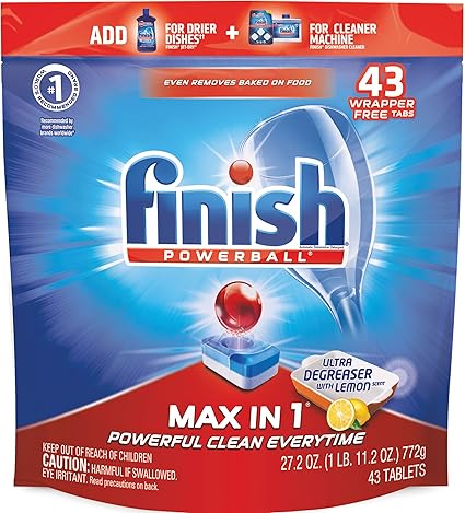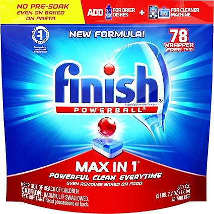 Fulfilled by Amazon . 0 in cart . Finish Dishwasher Salt - 2 kg . 4 .5 out of 5 stars 1,037 . . . Finish Power Ball All In 1 Max Dishwasher Tablets 48's Pack Of 2 . 1 .0 out of 5 stars 1