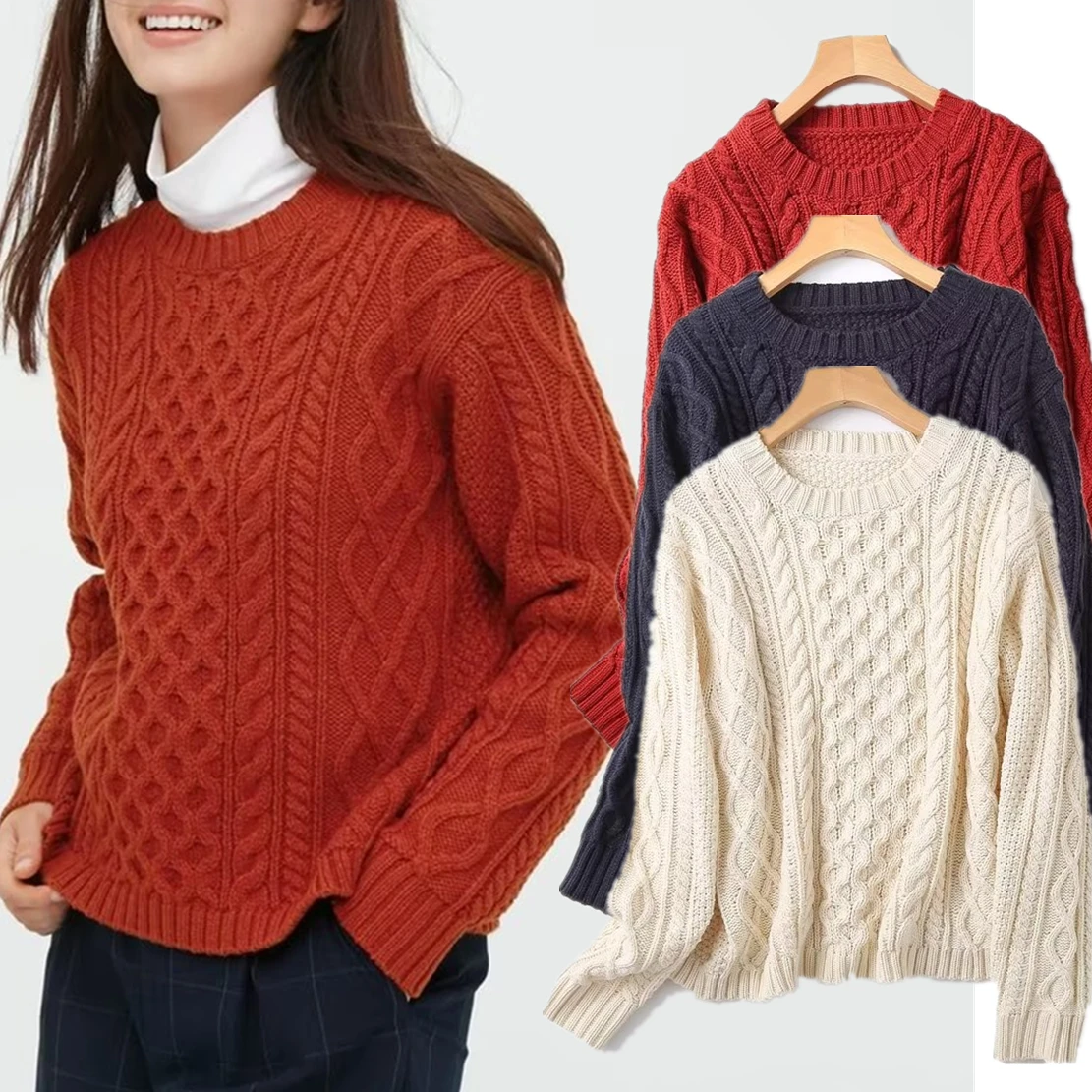 «Withered Japanese Simple Sweaters Women Vintage Pullovers Jacquard Solid Round Neck Tops» по лучшей цене на рынке! Всего за 22$ (2090рублей)