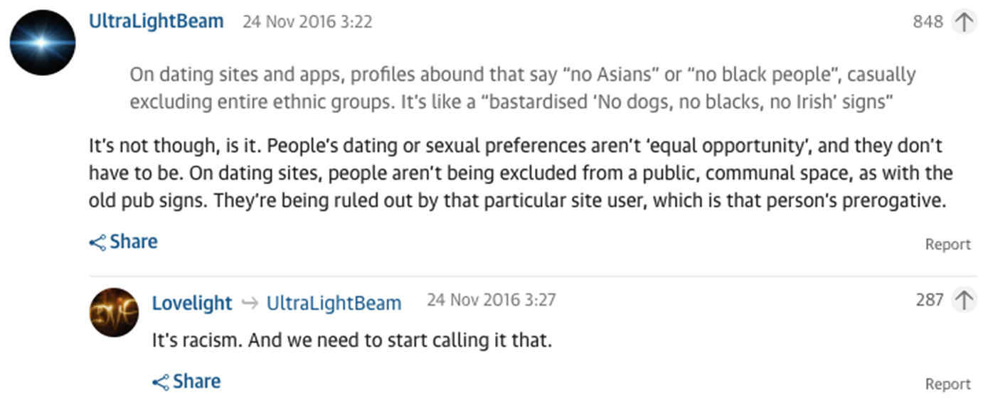 Why is it OK for online daters to block whole ethnic . . .