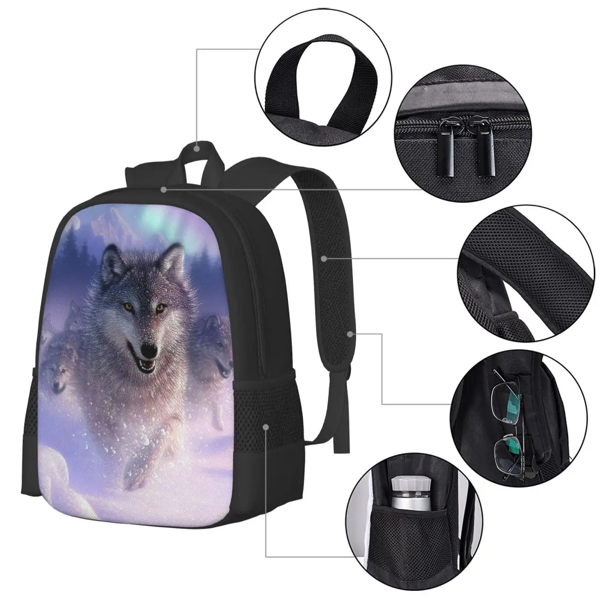 Wolf In Snow Heat Simple Stylish Student Schoolbag Waterproof Large Capacity Casual Backpack Travel Laptop Rucksack - Купить с бесплатной доставкой