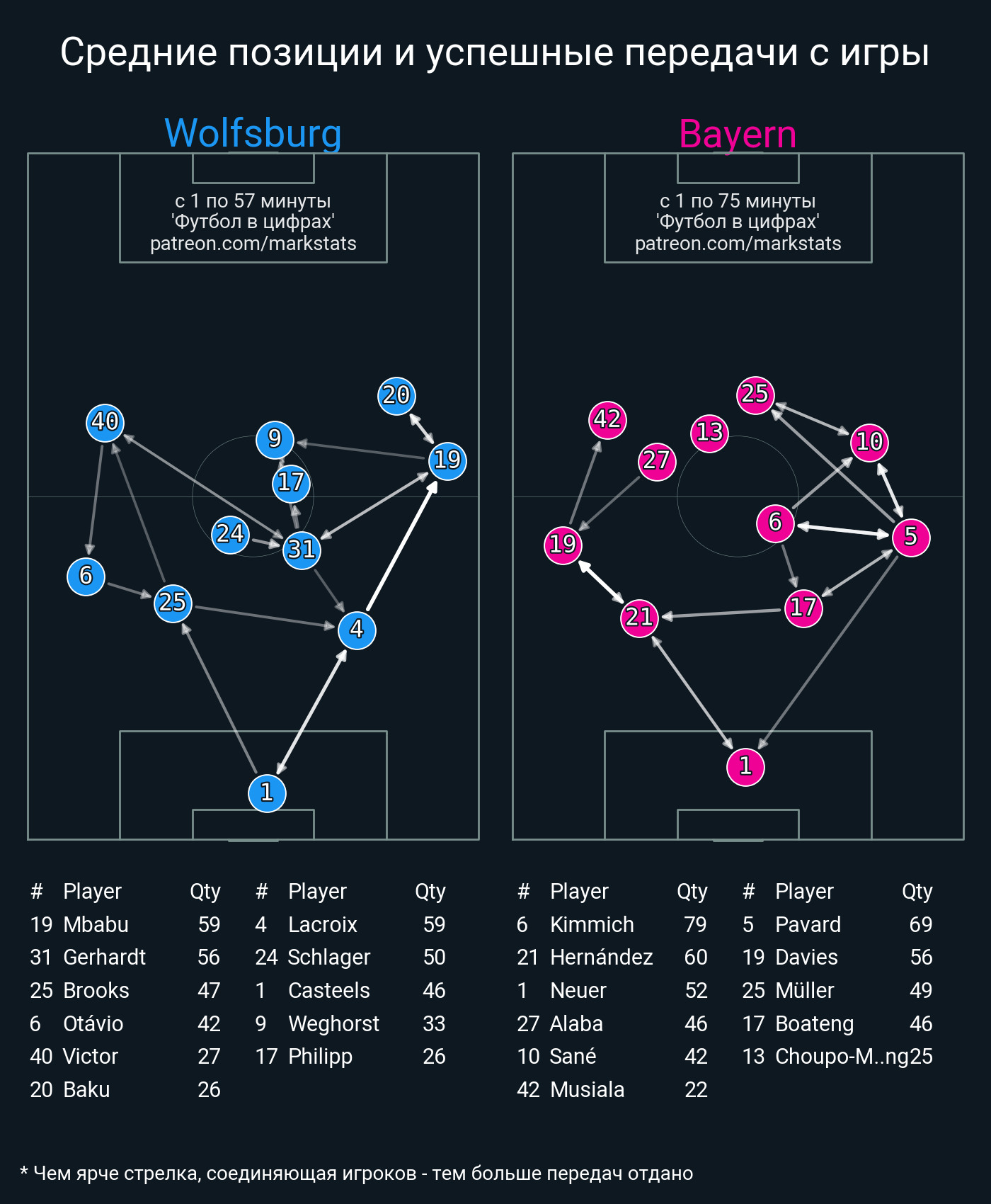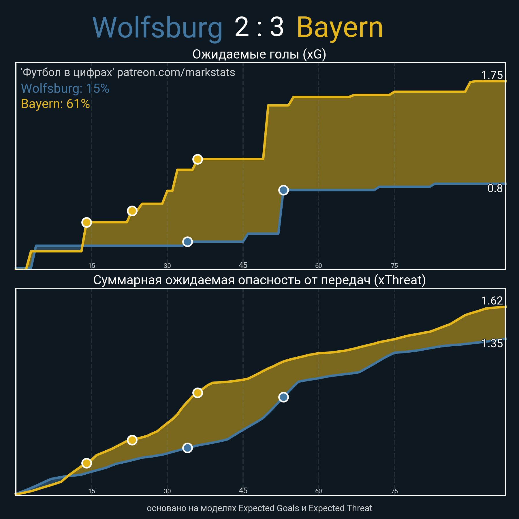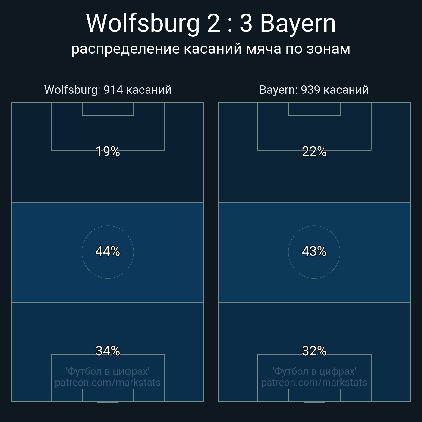 Футбол в цифрахСтатистика матча Wolfsburg - Bayern