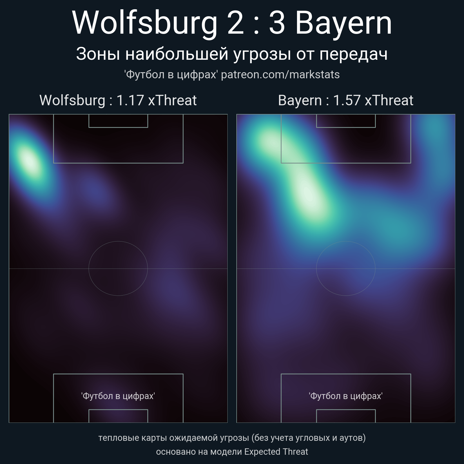 ▪ xThreat без учета угловых: 1.17 - 1.57