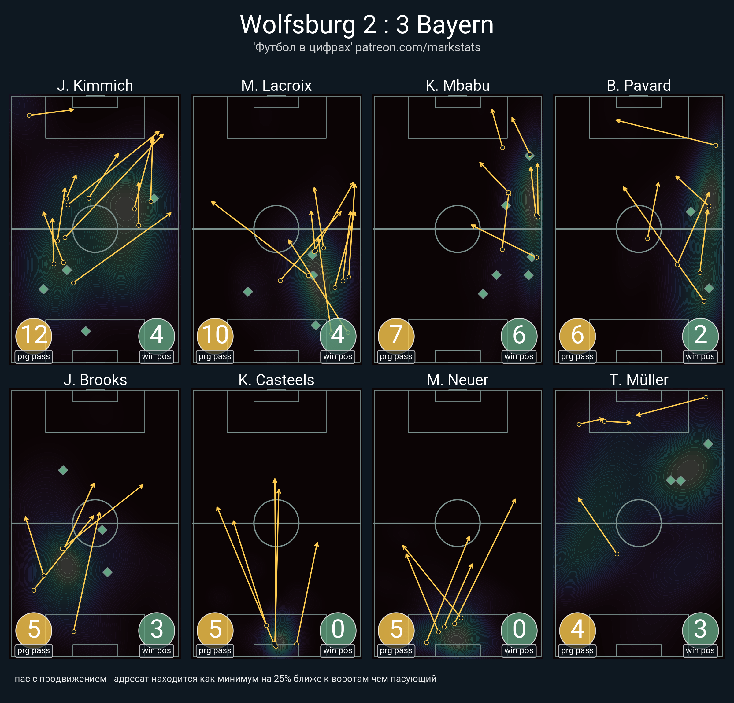 ▪ 24 успешных передач из 46 попыток (1 ассист, 2 под удар, 3 с продвижением, 4 на трети соперника)