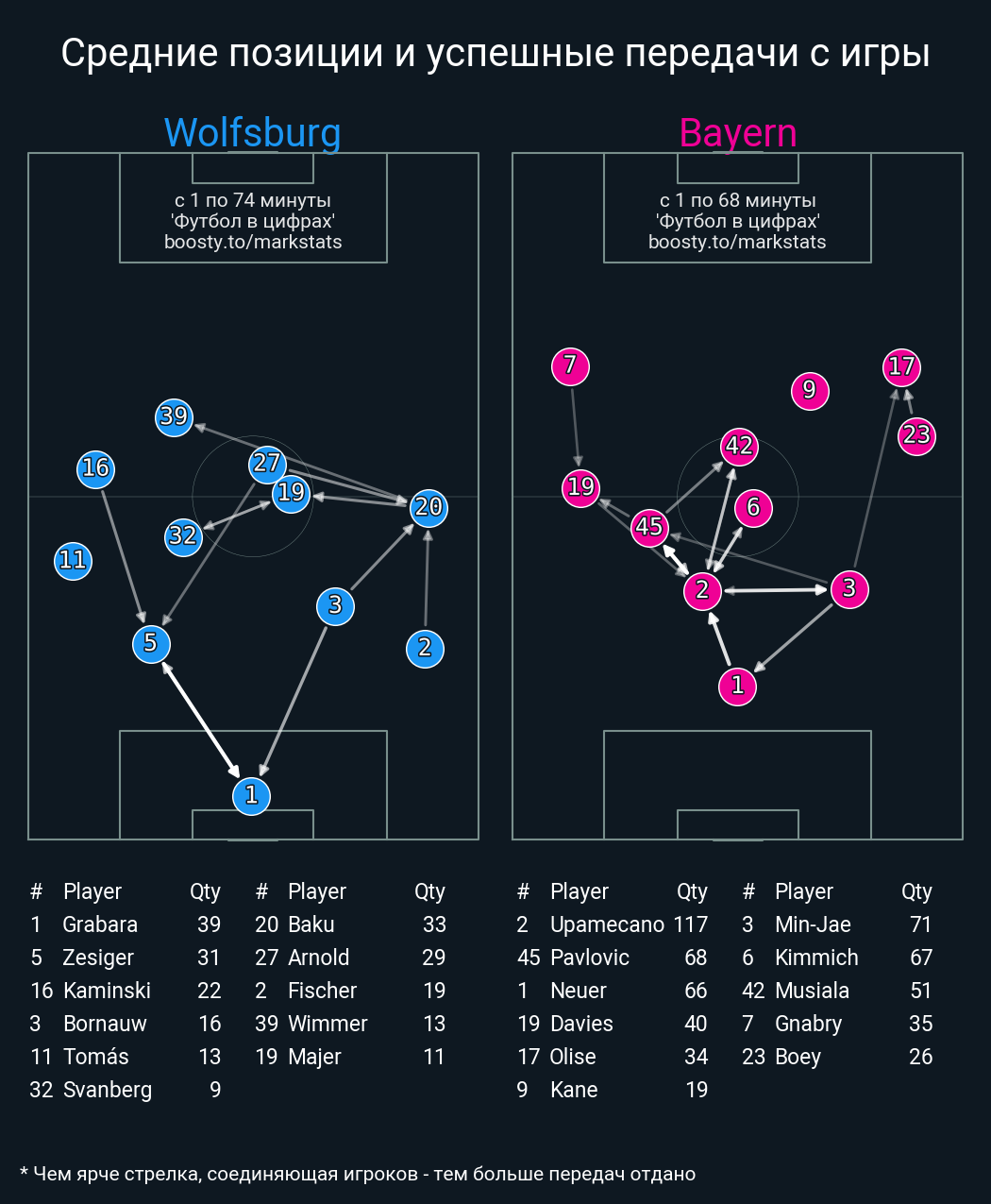 42 успешных передач из 51 попыток (1 под удар, 5 с продвижением, 9 на трети соперника)