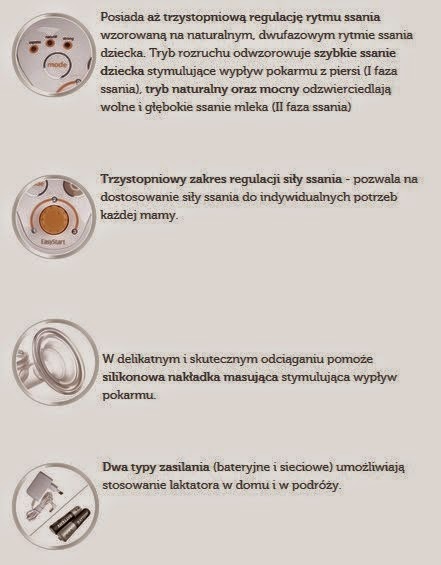 Pierwsza faza obejmuje wywołanie wypływu pokarmu poprzez delikatne ssanie . Druga z kolei to efektywne odciąganie, czyli ssanie wolne i głębokie . Urządzenie to współpracuje z laktatorami szpitalnymi typu Lactima (wystarczy zaopatrzyć się w tłok kompletny i dren) . Laktator marki Medela jest także kompatybilny z urządzeniami typu . . .