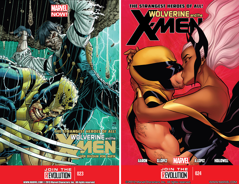 Storm and Wolverine have often been quite flirty together, and have had their share of dalliances, including in the October 2012 issue of Wolverine and the X-Men, which featured this steamy cover .