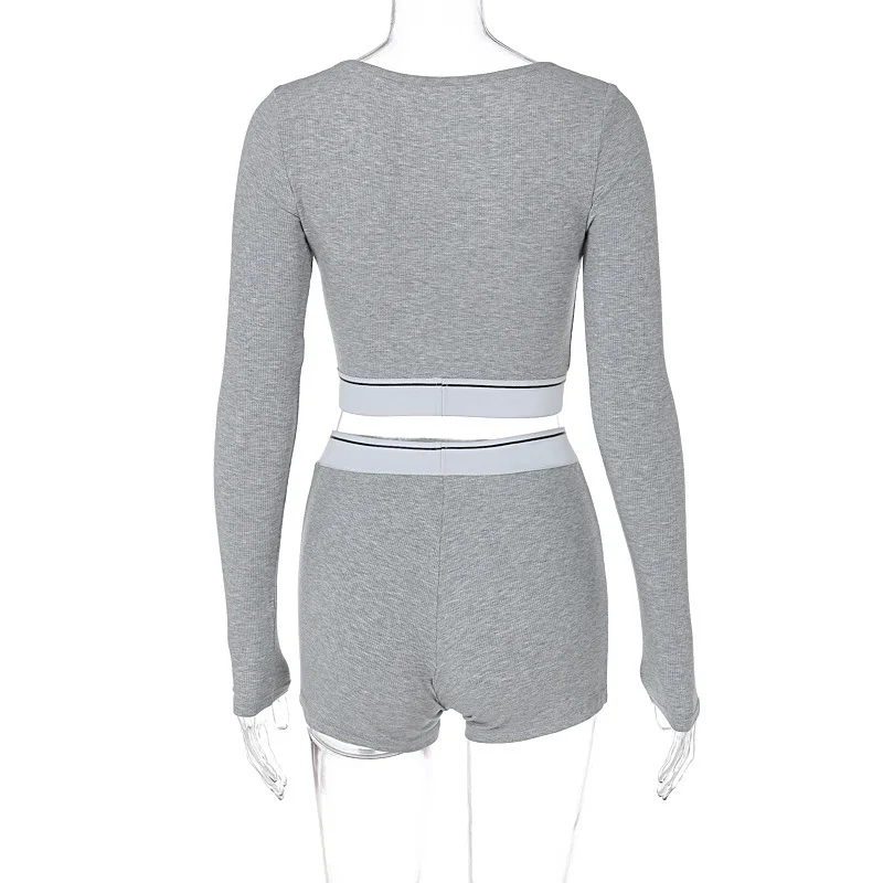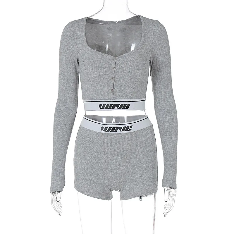vdgrTdsdvHere you can buy Woman 2pcs Rib Suit Solid Color Long Sleeve Front Button Crop T-shirt +Hot Short Tracksuit 2Color S-L with free delivery to your post office.