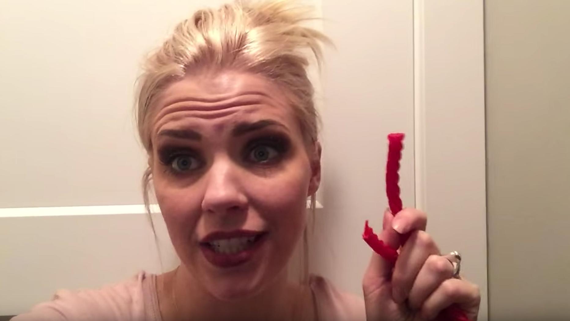 Woman locks herself into leather