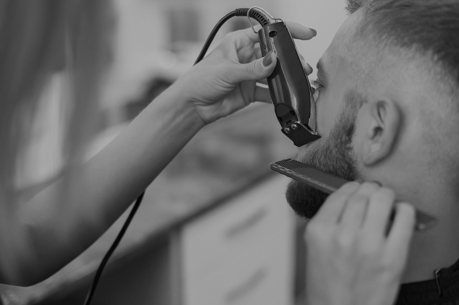 Woman shaving men