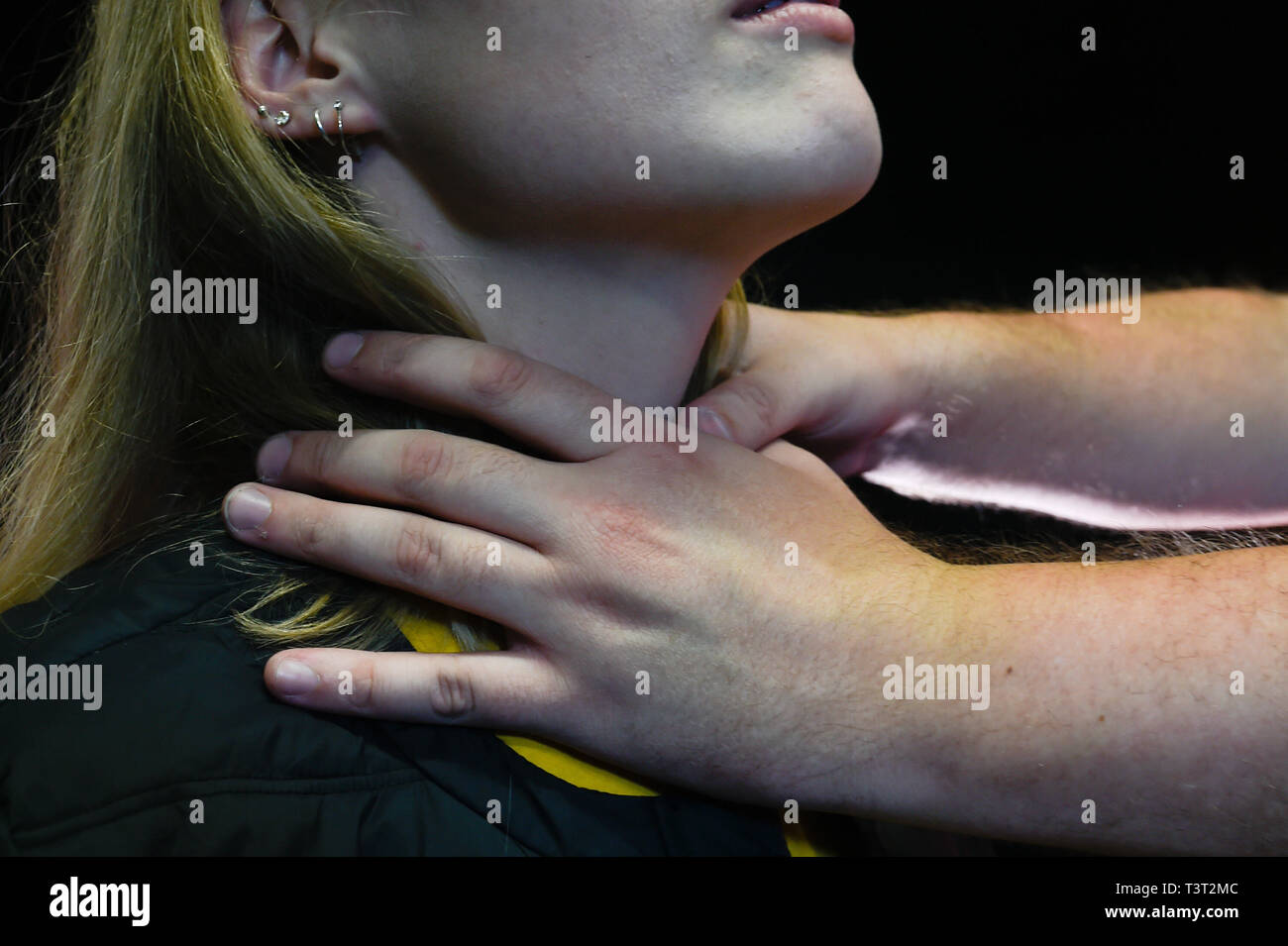 Woman strangle man