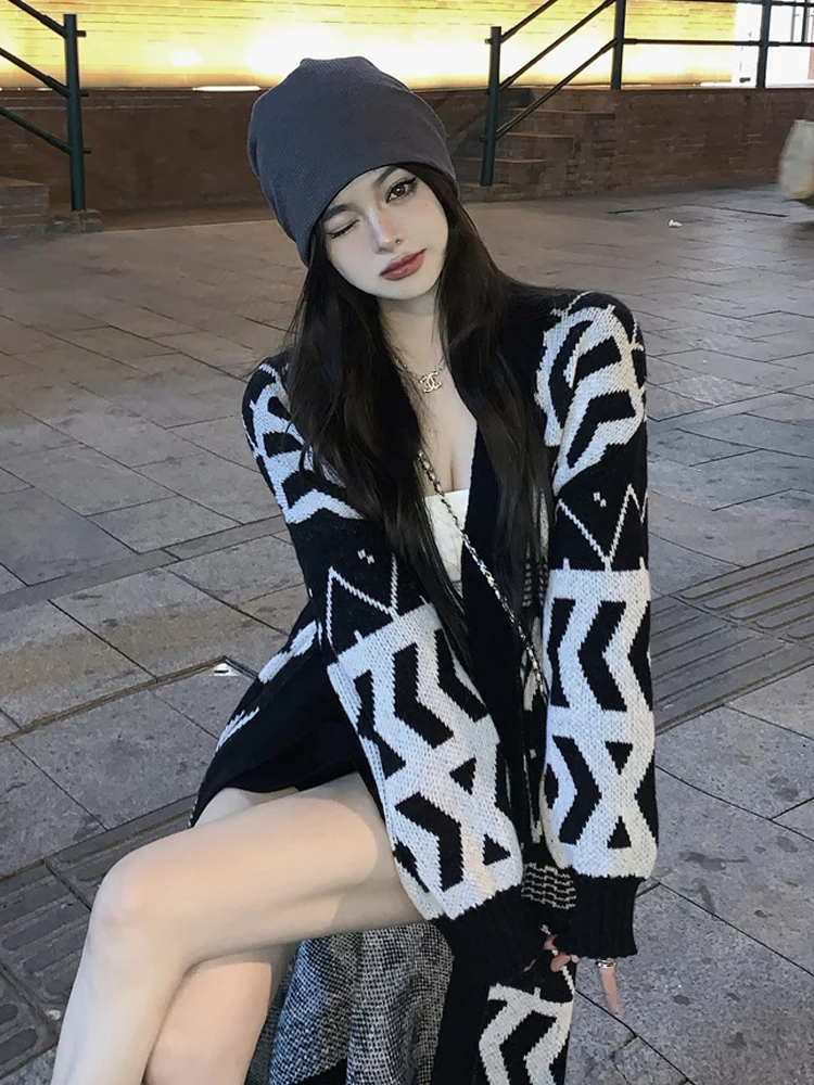 PplfathzmyДолго искали Women Autumn Winter Lazy Wind Black Geometric Color Contrast Sweater Cardigan Coat Above Knee Mid-Length Knitted Outer Wear 2022, но не могли найти? Предоставляем вашему вниманию Women Autumn Winter Lazy Wind Black Geometric Color Contrast Sweater Cardigan Coat Above Knee Mid-Length Knitted Outer Wear 2022 по лучшей цене на рынке!