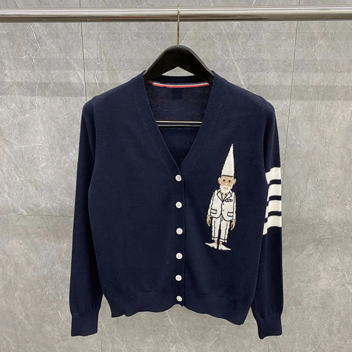 «Women Cardigan Classical TB Brand Thom Sweaters Lady Slim Fit V-Neck Jacquard Weave Striped Cardigans Wool Street Fashion» по лучшей цене на рынке! Всего за 33$ (3135рублей)