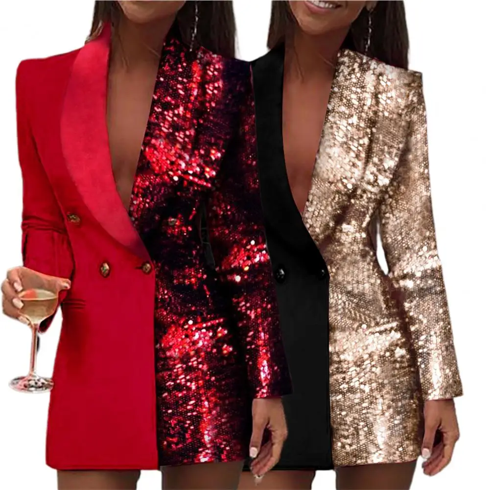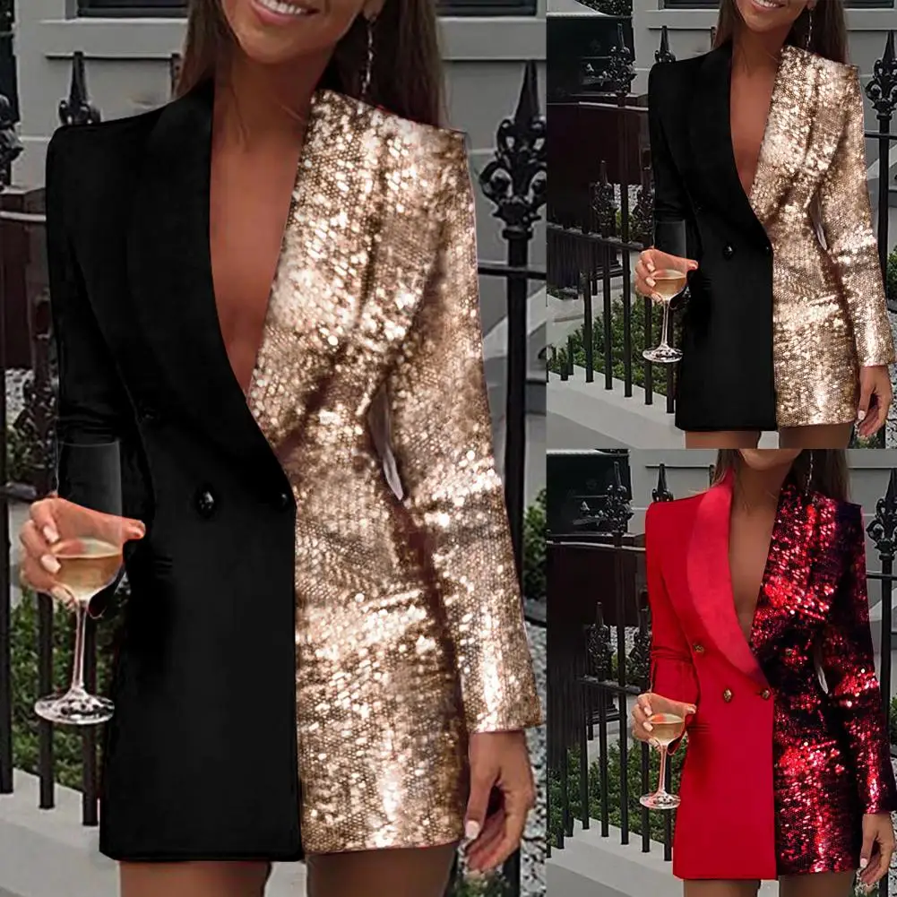 «Women Dress Deep V Neck Sequined Autumn Winter Sexy Contrast Color Work Formal Dress for Party» по лучшей цене на рынке! Всего за 14$ (1330рублей)