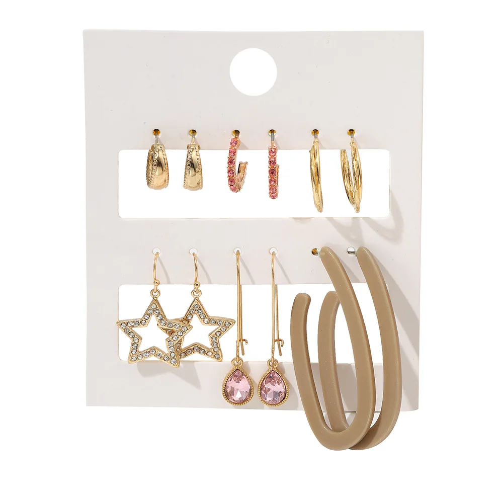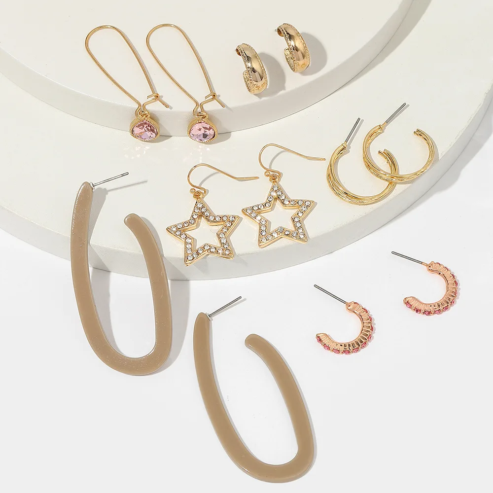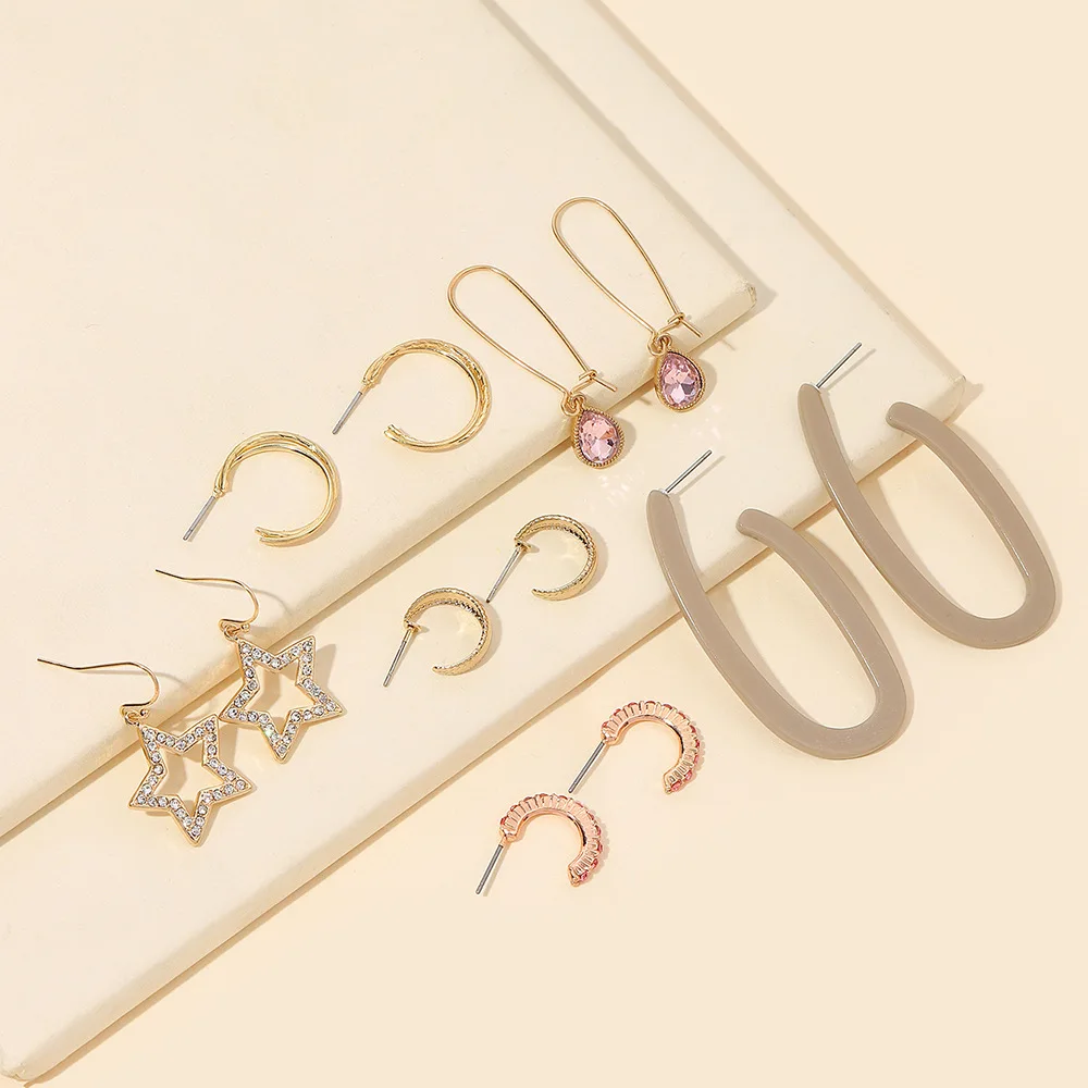 «Women Earring Sets Gold Crystals OL Gold Stars C Shape Mixed Earrings Set for Women Female» по лучшей цене на рынке! Всего за 3$ (285рублей)