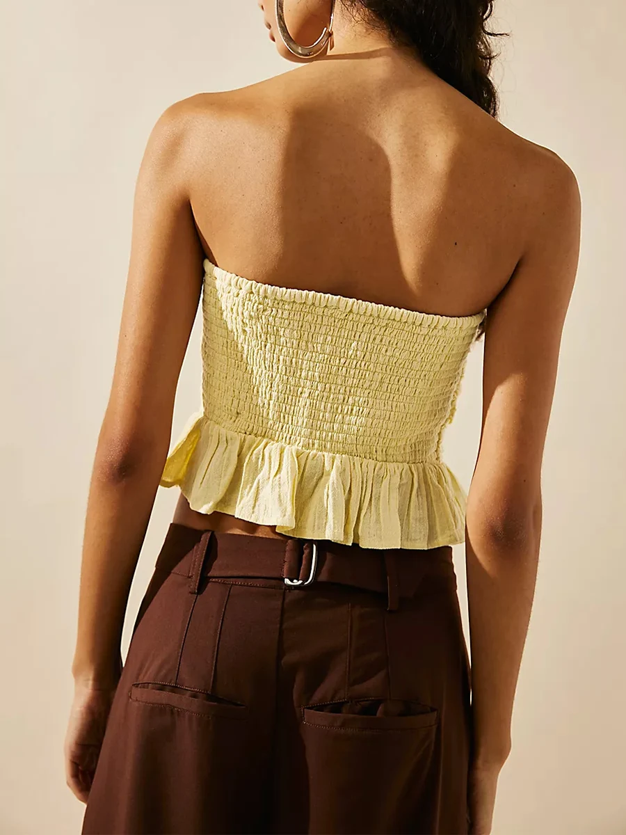 qwgpwPvvtHere you can buy Women Elastic Crop Tops Basic Ruched Bandeau Summer Ruffled Hem Solid Color Wrap Chest Strapless Off Shoulder Fairy Streetwear with free delivery to your post office.