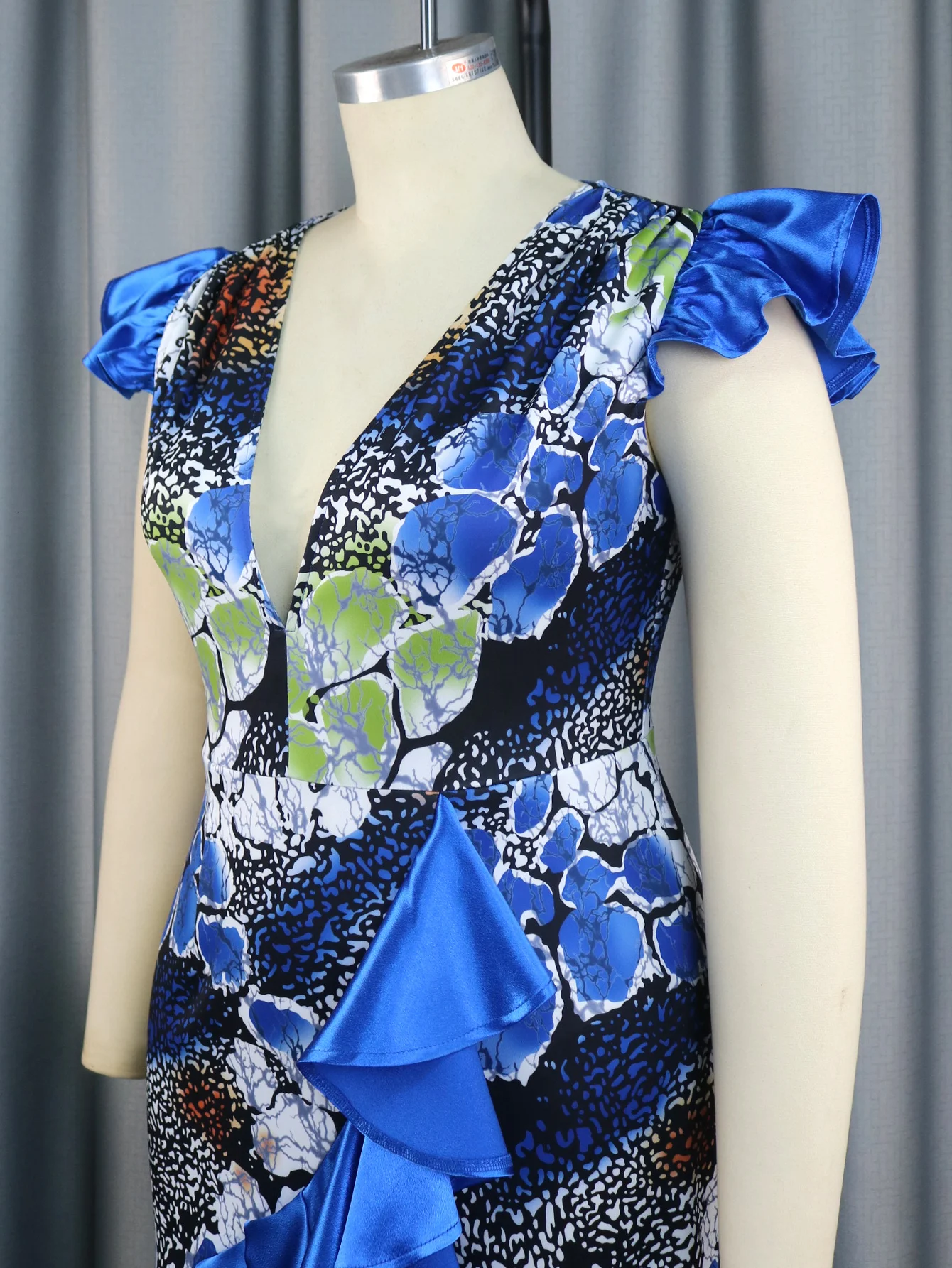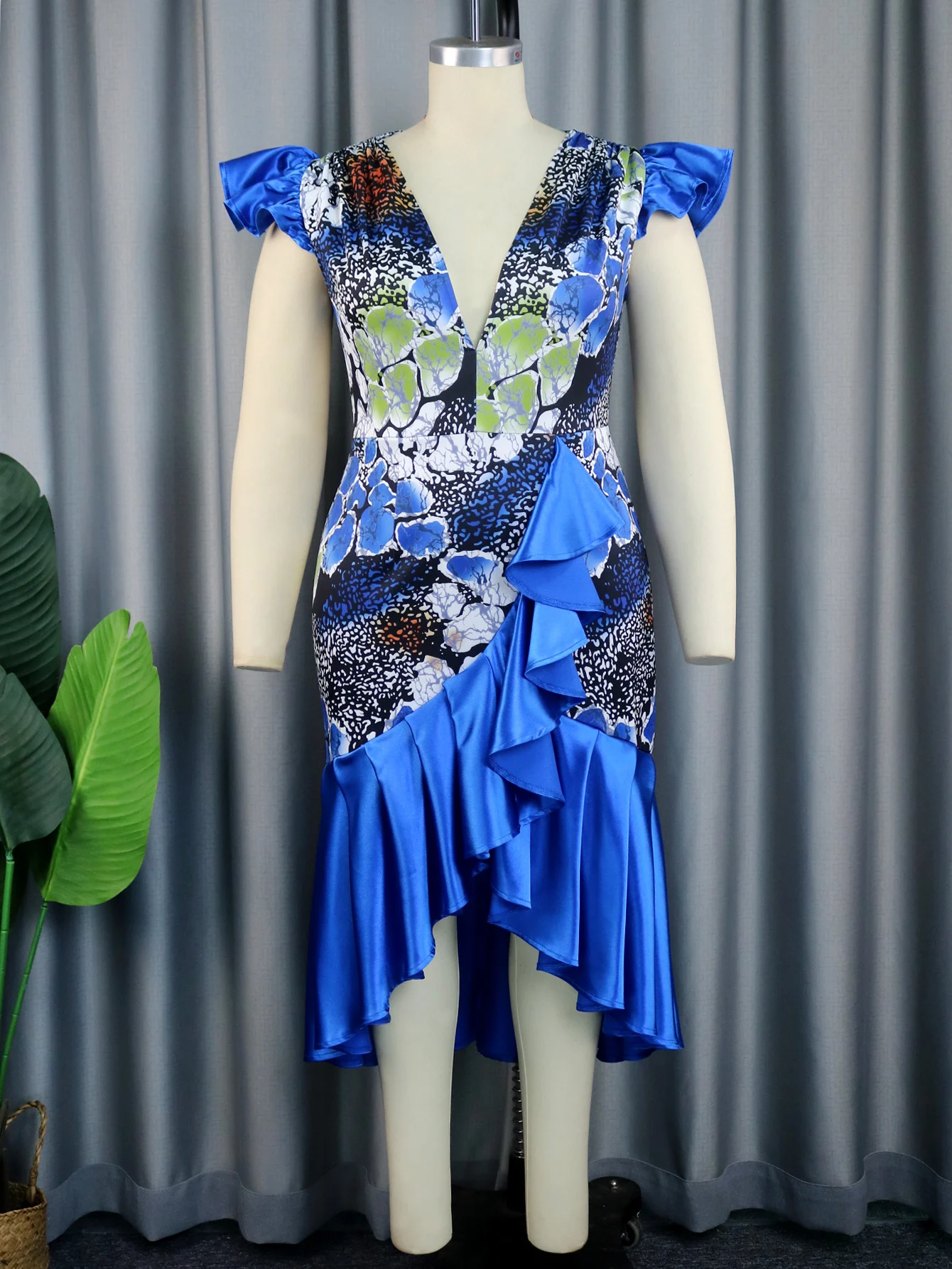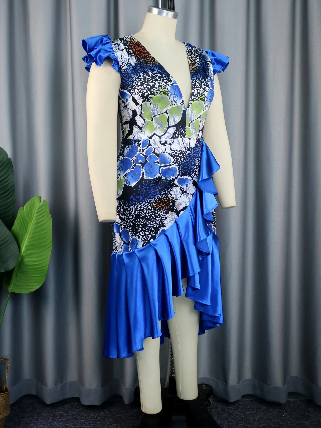 Women Irregular Long Party Dress Printed Deep V Neck Sleeveless Ruffles Asymmetrical Patchwork African Female Robe Vintage Retro - Купить с бесплатной доставкой