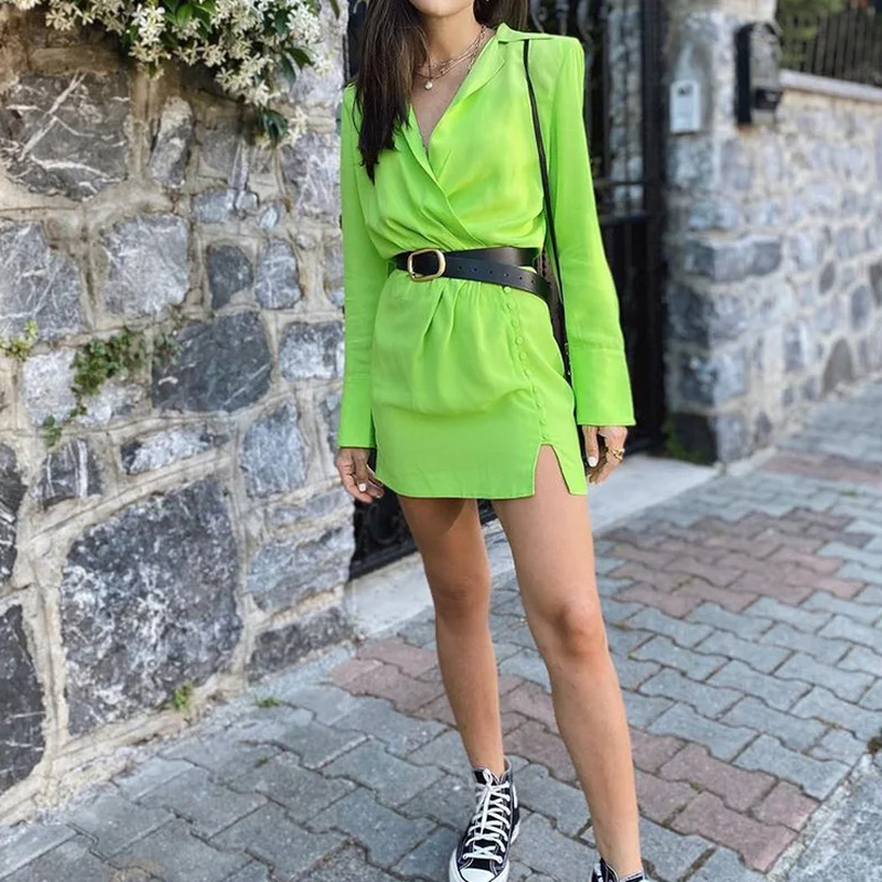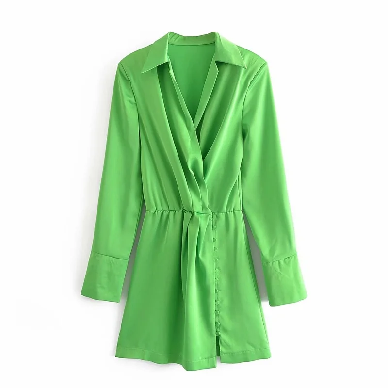 «Women Long Sleeve Casual Fashion Chic Solid Dresses 2021 Summer Turn Collar Shirt Dress Lady Vintage Light Green Short Dress Pop» по лучшей цене на рынке! Всего за 18$ (1710рублей)