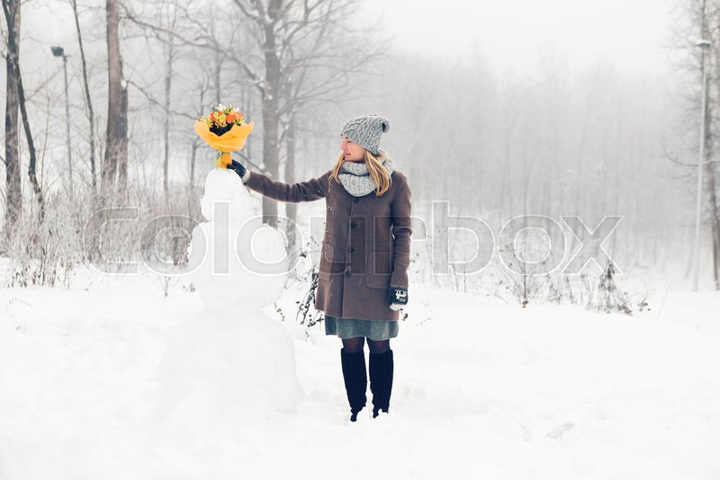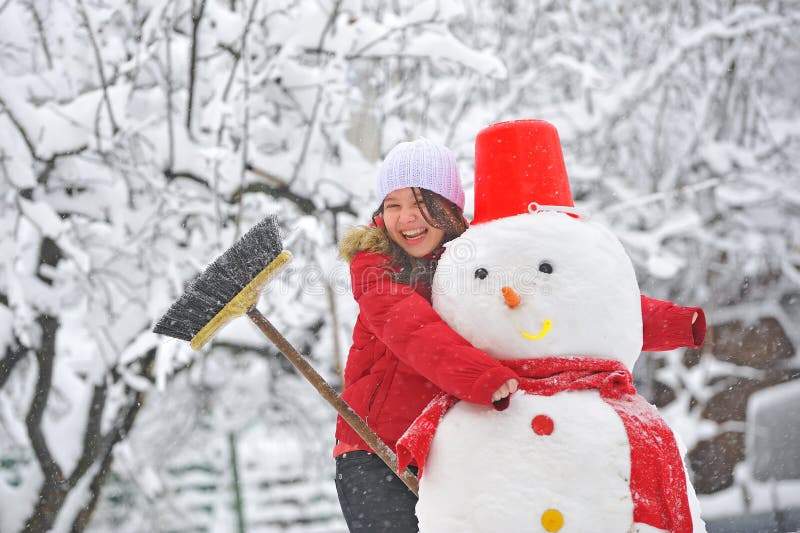 158 Woman Winter Park Making Snowman Photos - Free ...
