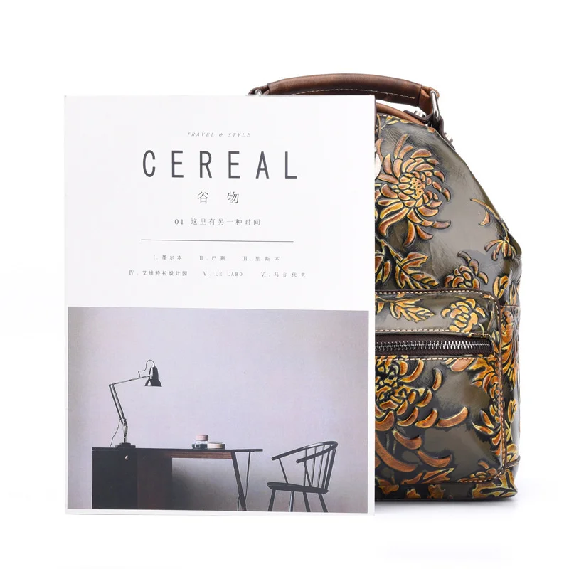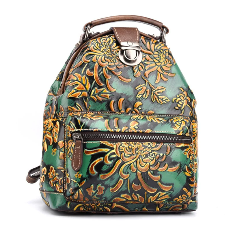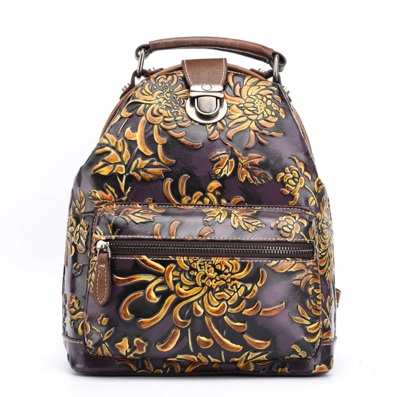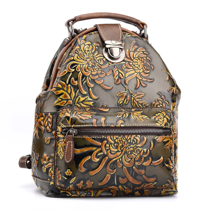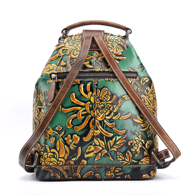 NsozNMboRHere you can buy Women Natural Skin Rucksack Knapsack Embossed Brush Color Floral Pattern Travel Bag Retro Genuine Leather Backpack Daypack with free delivery to your post office.