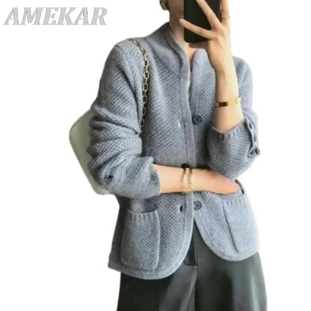«Women New Thickened Pure Cashmere Cardigan Autumn Winter Elegant Stand Neck Sweater Ladies Loose Knit Base Button Sweater Jacket» по лучшей цене на рынке! Всего за 37$ (3515рублей)
