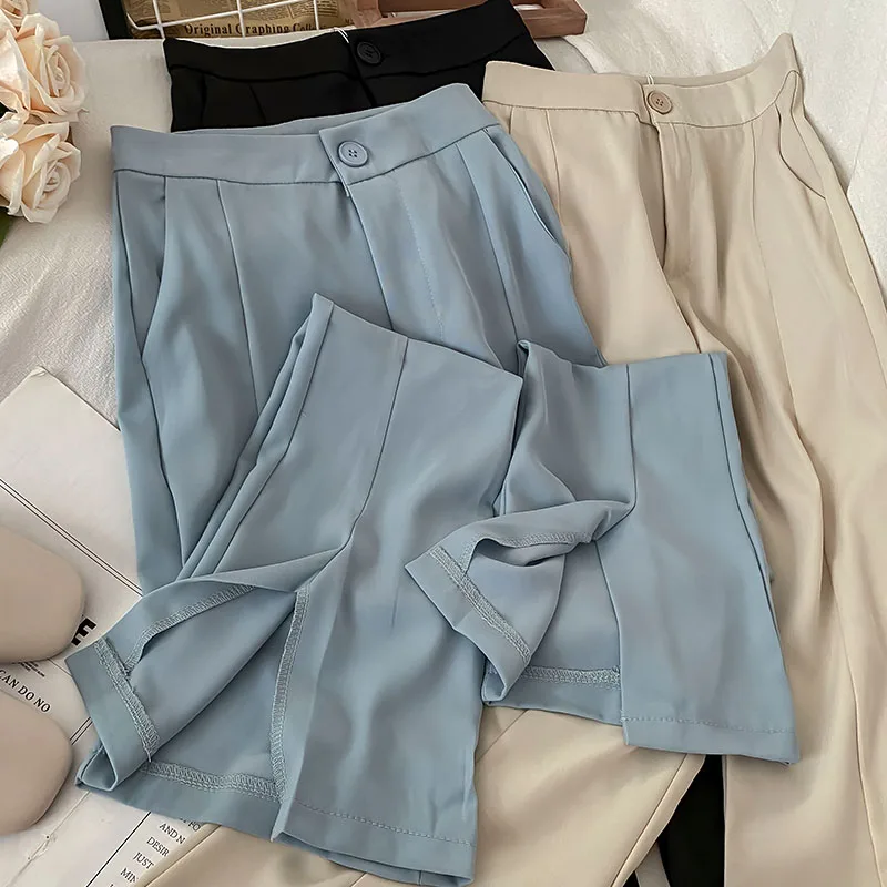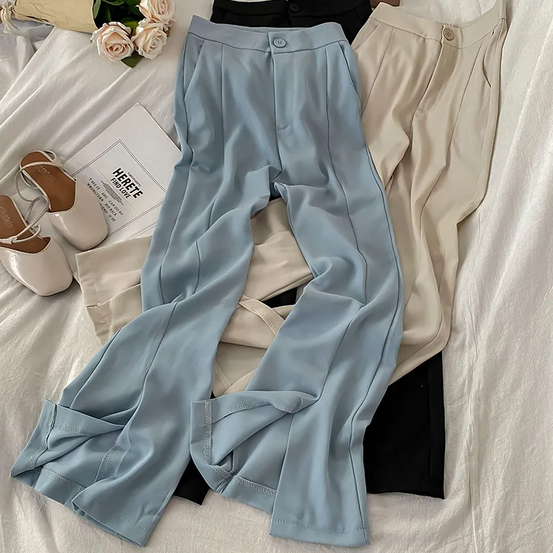 "Women Solid Color Split Chiffon Flared Long Pants 2022 Summer Autumn Elegant Office Ladies Trousers Simple Wide Leg Long Pants" * Buy Now Just For 12$