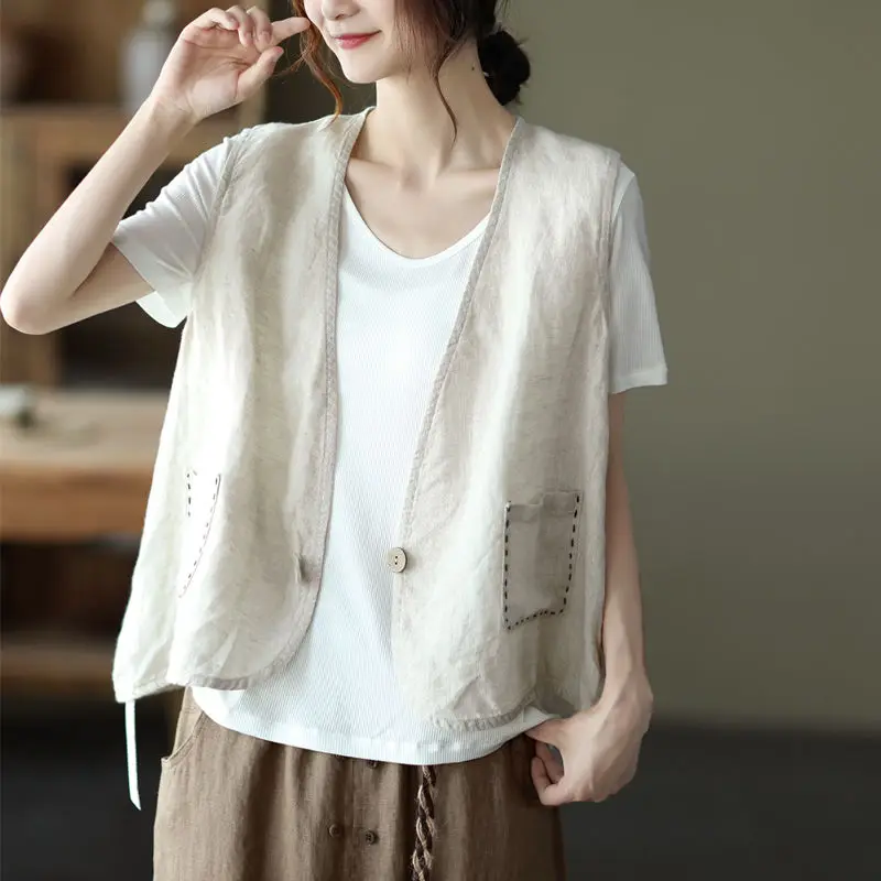 qIVcyikwOLooked for Women Spring Autumn Vest Pure Cotton Sleeveless Jacket Linen Cardigan Fashion Korean Retro Short Designer Grace Jacket Plus Size for a long time, but could not find it? Bring to your attention Women Spring Autumn Vest Pure Cotton Sleeveless Jacket Linen Cardigan Fashion Korean Retro Short Designer Grace Jacket Plus Size with the best price!
