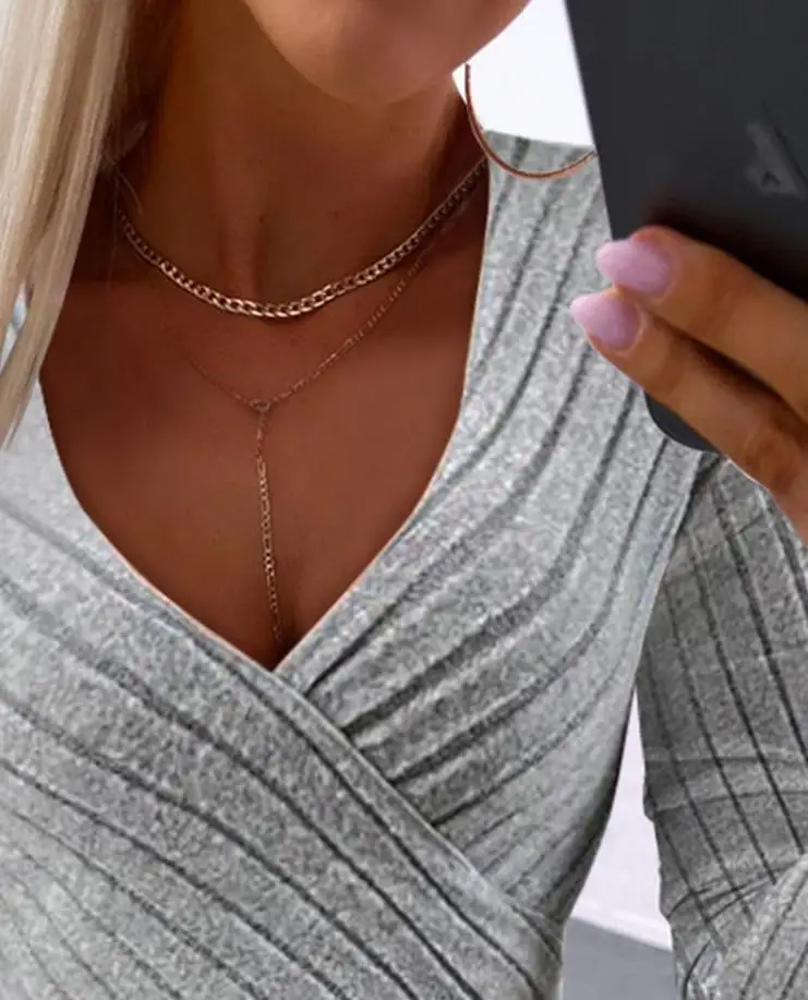 "Women Sweater Solid Color Deep V Neck Overlap Asymmetrical Long Sleeve Top Split Pullover Warm KnittingSpring Top Female Clothes" * Buy Now With Free Shipping Just For $4