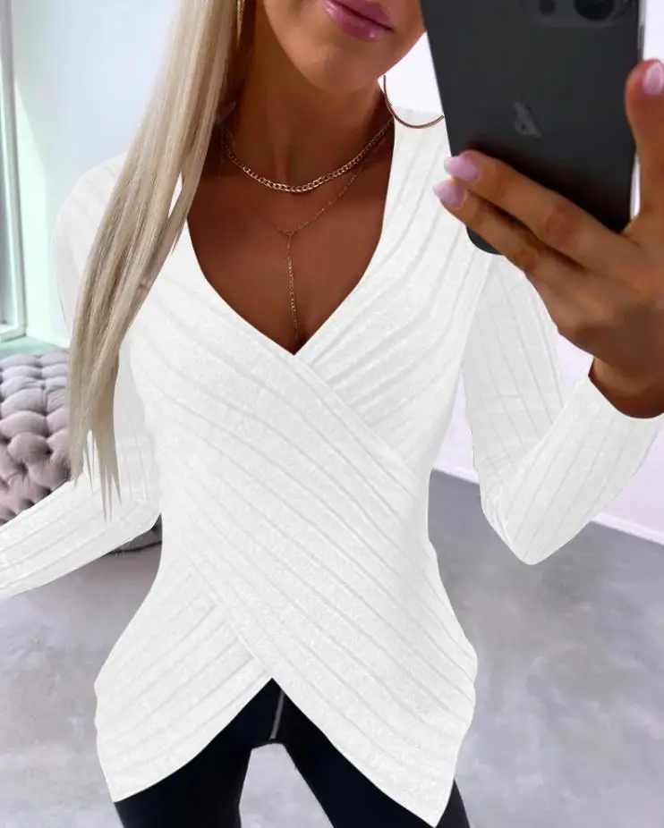pRAosYEGekHere you can buy Women Sweater Solid Color Deep V Neck Overlap Asymmetrical Long Sleeve Top Split Pullover Warm KnittingSpring Top Female Clothes with free delivery to your post office.