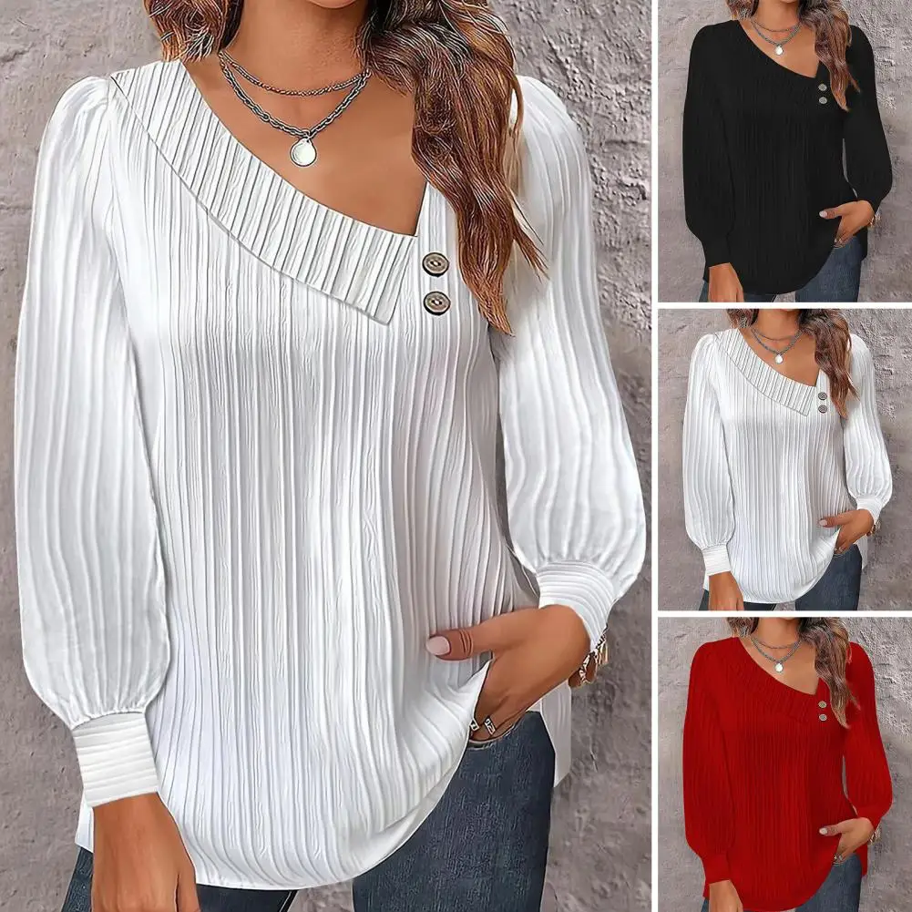 BWSSTRGFkЗдесь вы сможете купить Women Top Oblique Neck Button Decor Lantern Sleeve Solid Color Pullover Soft Breathable Lady Fall Spring Commute Blouse с бесплатной доставкой до вашего почтового отделения.