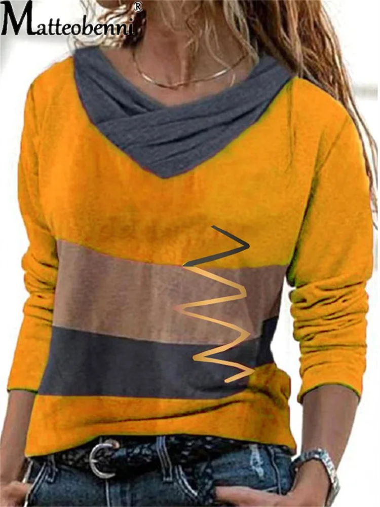 "Women V Neck Contrast Color Irregular Stitching Stripes T-Shirt Spring Autumn Long Sleeve Street Hipster Clothes Ladies Tee Tops" * Buy Now Just For 10$