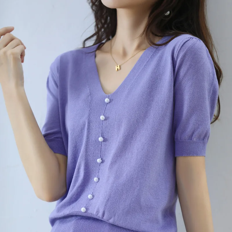 TLhVbYXlДолго искали Women's 2022 Short Sleeve Knit Sweater Gentle Temperament Pearl Button V-Neck Summer Korean Version Age-reducing All-match Top, но не могли найти? Предоставляем вашему вниманию Women's 2022 Short Sleeve Knit Sweater Gentle Temperament Pearl Button V-Neck Summer Korean Version Age-reducing All-match Top по лучшей цене на рынке!